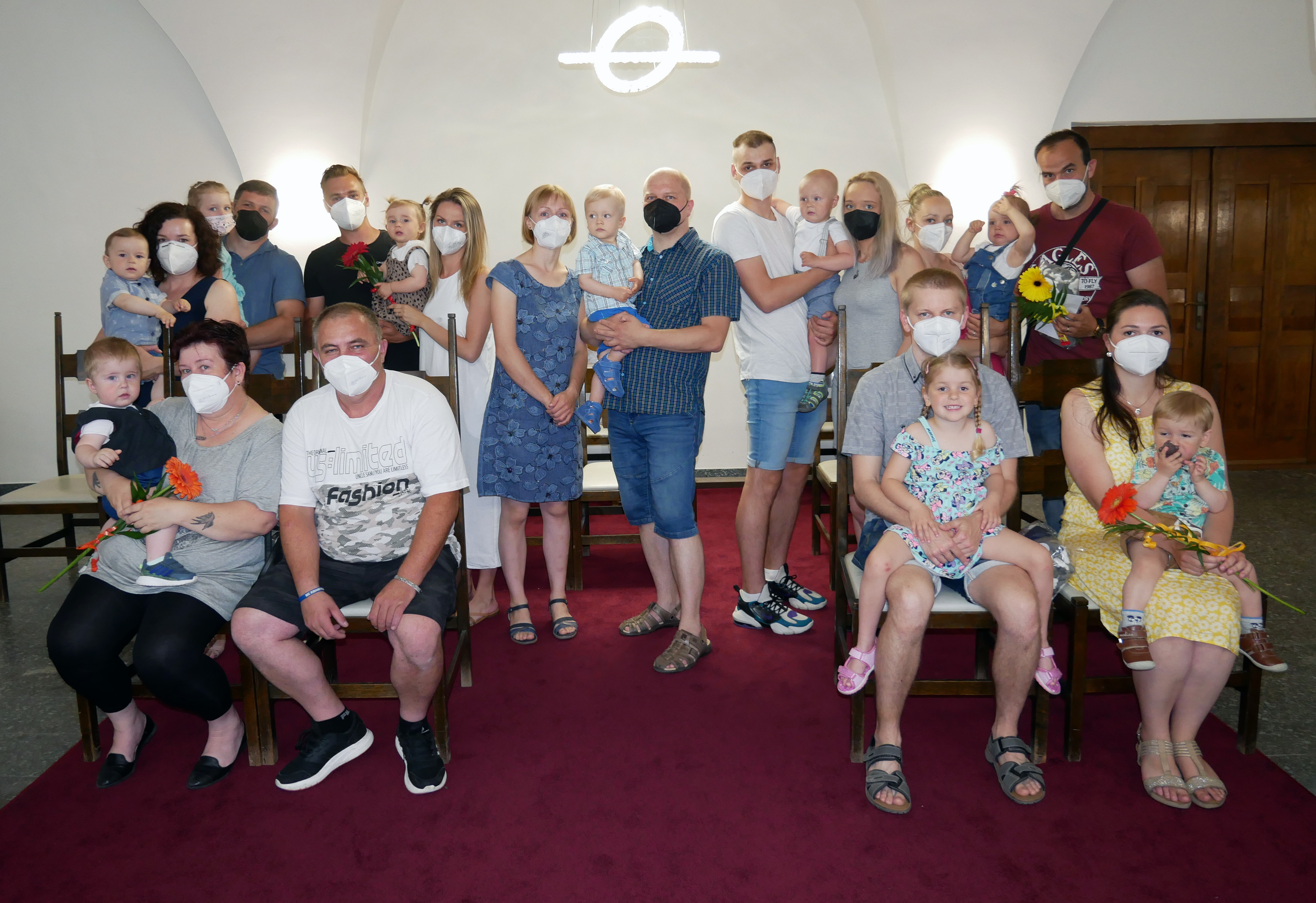 Obřadní síň na radnici v pátek 18. června zaplnili noví občánci z Velkého Meziříčí a jeho místních částí. Vlivem koronavirové pandemie se slavnostní uvedení do života ve městě odkládalo o více než rok. Poprvé ve své funkci tak občánky přivítal místostarosta města František Smažil, který rodičům předal finanční i věcný dar od města včetně květiny. Vzhledem k neustálené epidemické situaci nevystoupily děti z mateřské školy, jak tomu bývalo zvykem. O hudební doprovod se postarala paní Pavla Kamanová hrou na klavír.