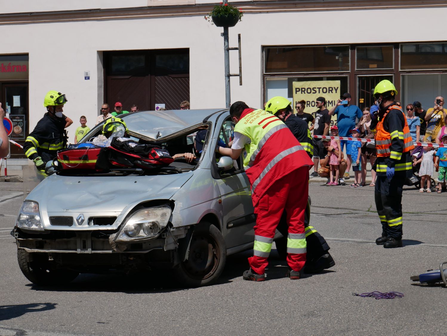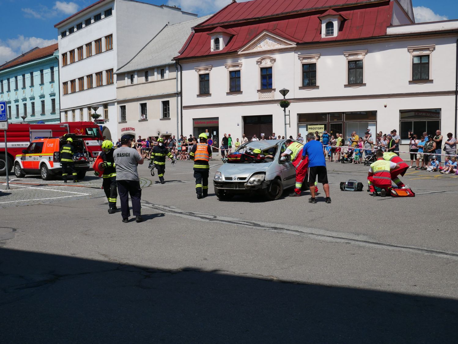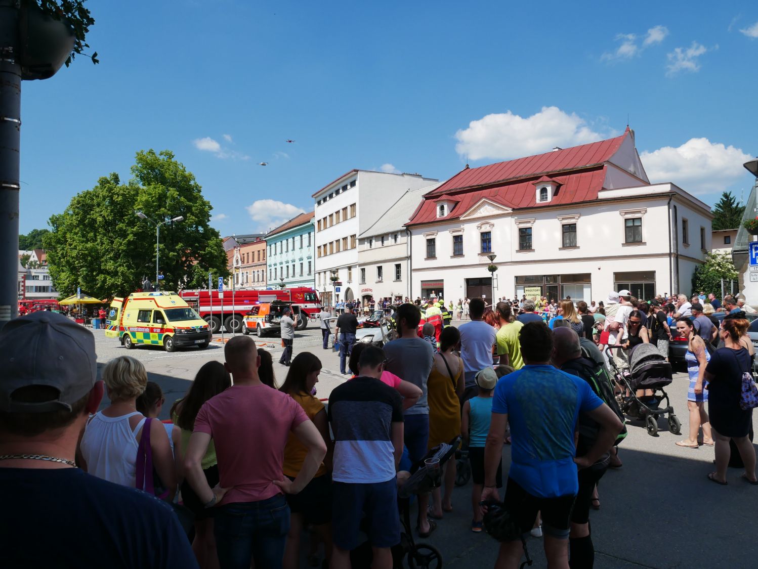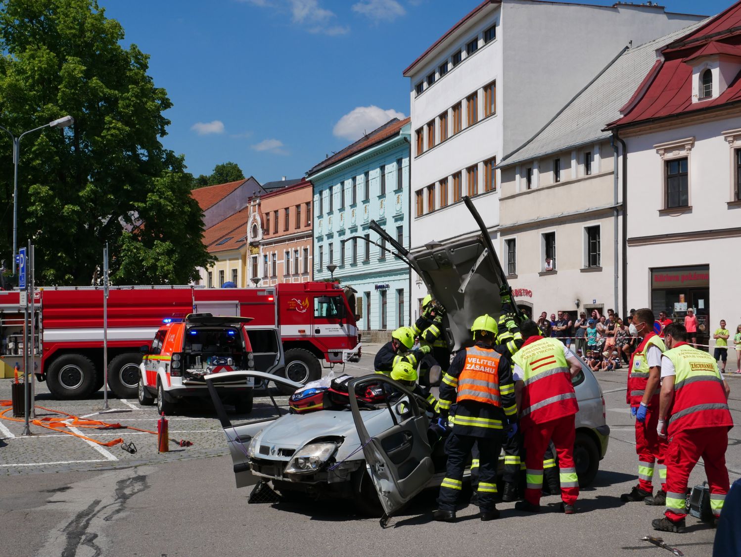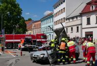 Odpolední dynamické ukázky přilákaly davy. Pozornost upoutala celní správa se svými psy vycvičenými na hledání drog, simulace zásahu u vážné dopravní nehody či profesionálové, kteří slaňovali z kostelní věže s osobou v nosítkách. Při hasičském výročí nechyběly plameny ani požární útok. Z hořícího domu zachránili dobrovolní hasiči dvě ohrožené osoby a oheň dostali pod kontrolu. Děti si vyzkoušely, jak se hasí a všichni až do odpoledních hodin detailně zkoumali vystavenou techniku. Vysoká návštěvnost, i přes tropické teploty, byla pořadatelům odměnou.