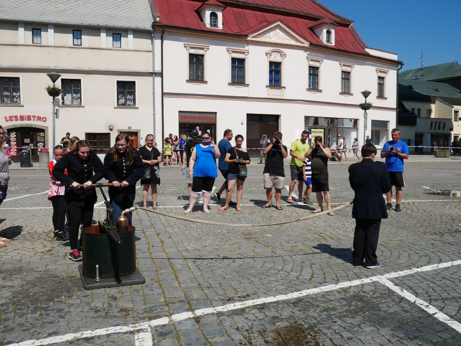 Hlavní část z plánovaných oslav významného výročí sboru dobrovolných hasičů proběhla v sobotu 19. června. Náměstí od ranních hodin zaplnila nejmodernější i historická technika dobrovolných hasičů, ale i Hasičského záchranného sboru Kraje Vysočina a Záchranného útvaru HZS rota Jihlava. Nechybělo ani občerstvení či skákací hrad pro menší návštěvníky.