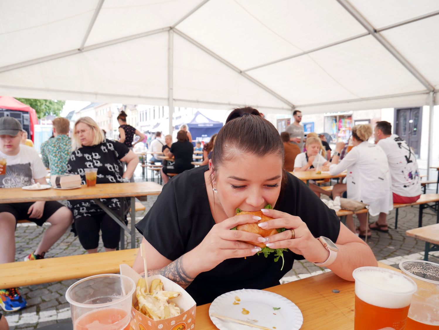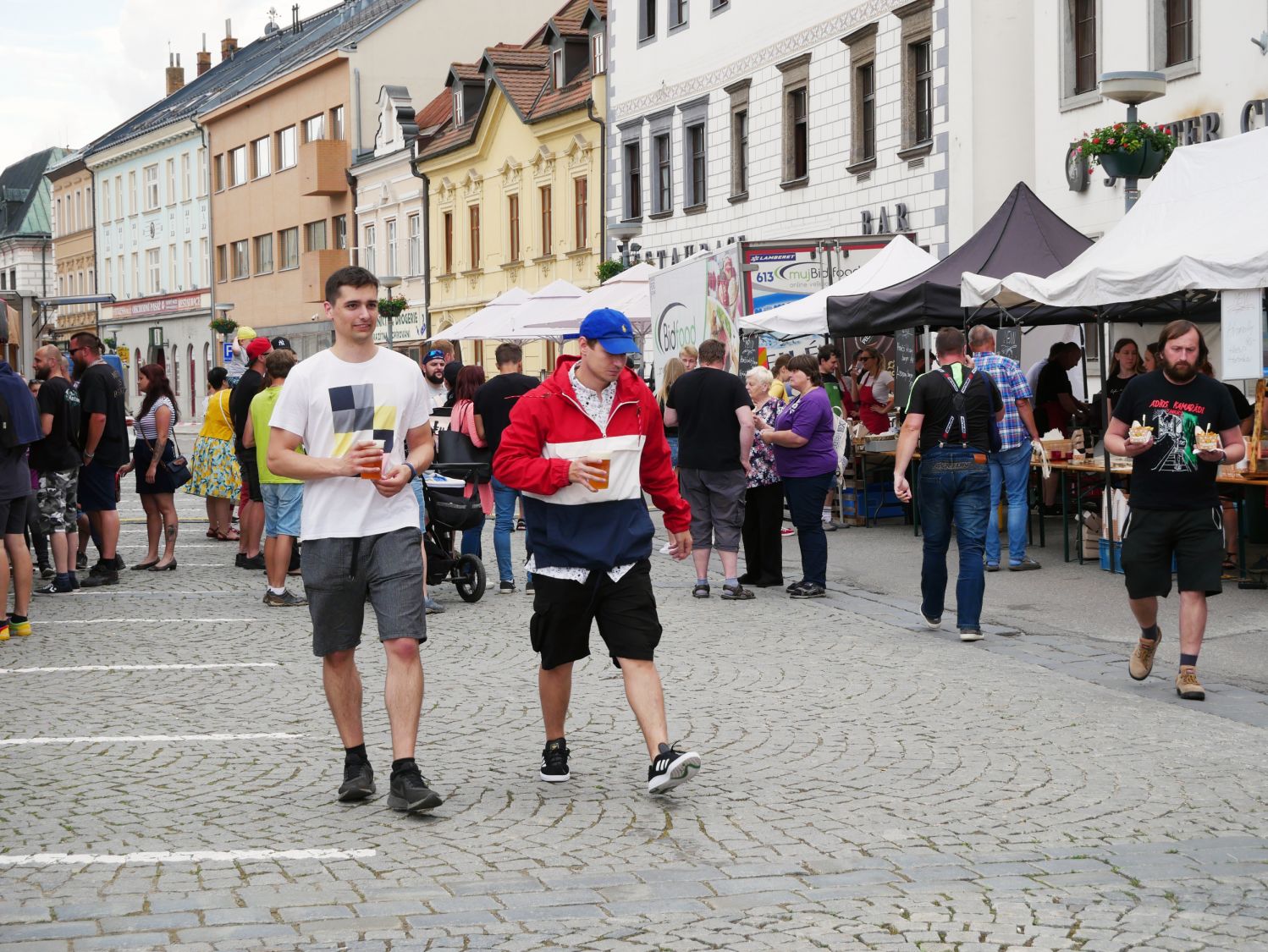 Stovky lidí přilákal Velkomeziříčský Burger Beer Fest v sobotu 26. června odpoledne do centra města. Ověřené spojení hamburgerů s pivovary a rockovou hudbou nezklamalo.