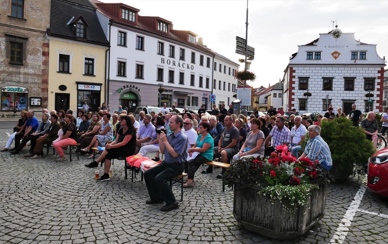 V nedělní podvečer se na náměstí ve Velkém Meziříčí rozezněly folkově lyrické písně z Vysočiny v podání skupiny Listověj.
