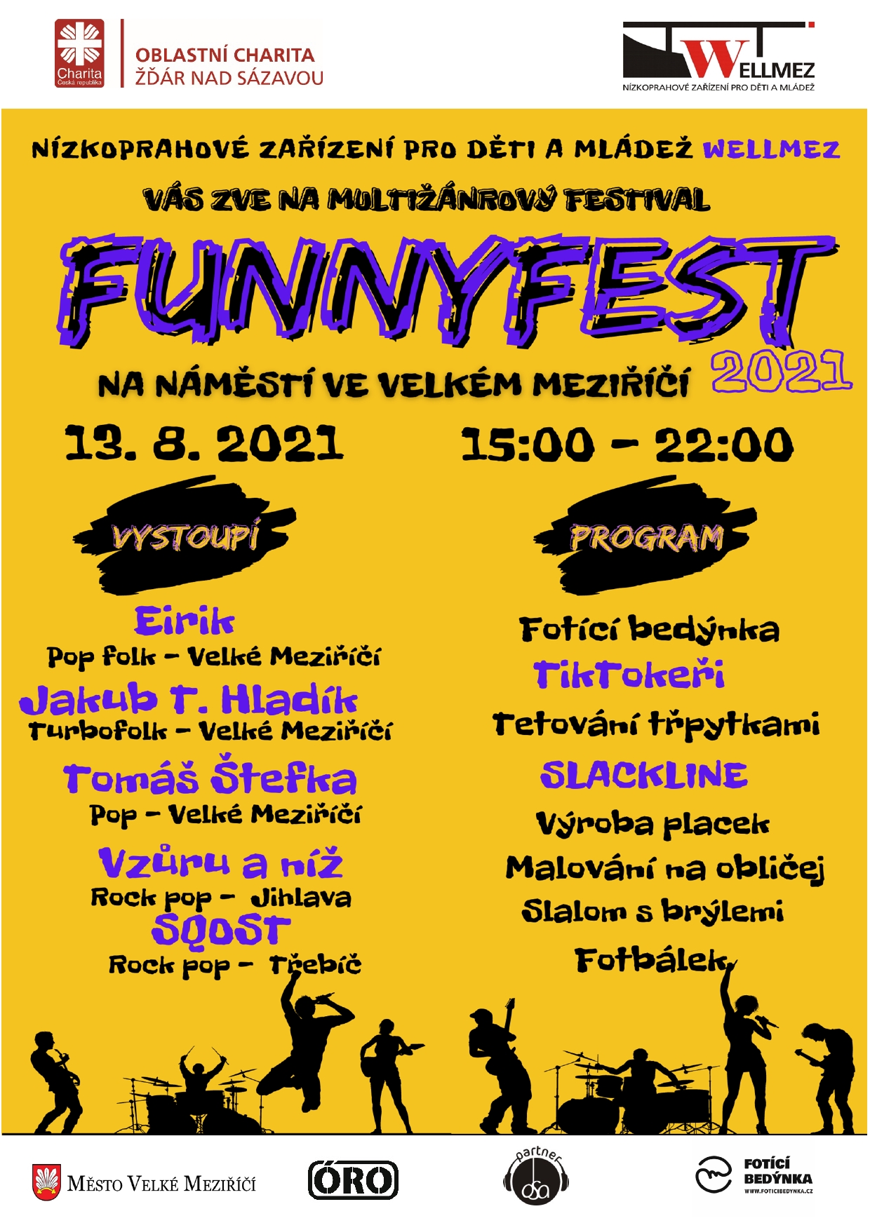 Nízkoprahové zařízení pro děti a mládež Wellmez, spadající pod Oblastní charitu Žďár nad Sázavou, působí ve Velkém Meziříčí od roku 2011. Letos v dubnu tedy oslavilo již desáté narozeniny. K této příležitosti připravili pracovníci pro své uživatele a širokou veřejnost sedmý ročník multižánrového festivalu FUNNY FEST, který proběhne v pátek 13. srpna na náměstí ve Velkém Meziříčí od 15 do 22 hodin.