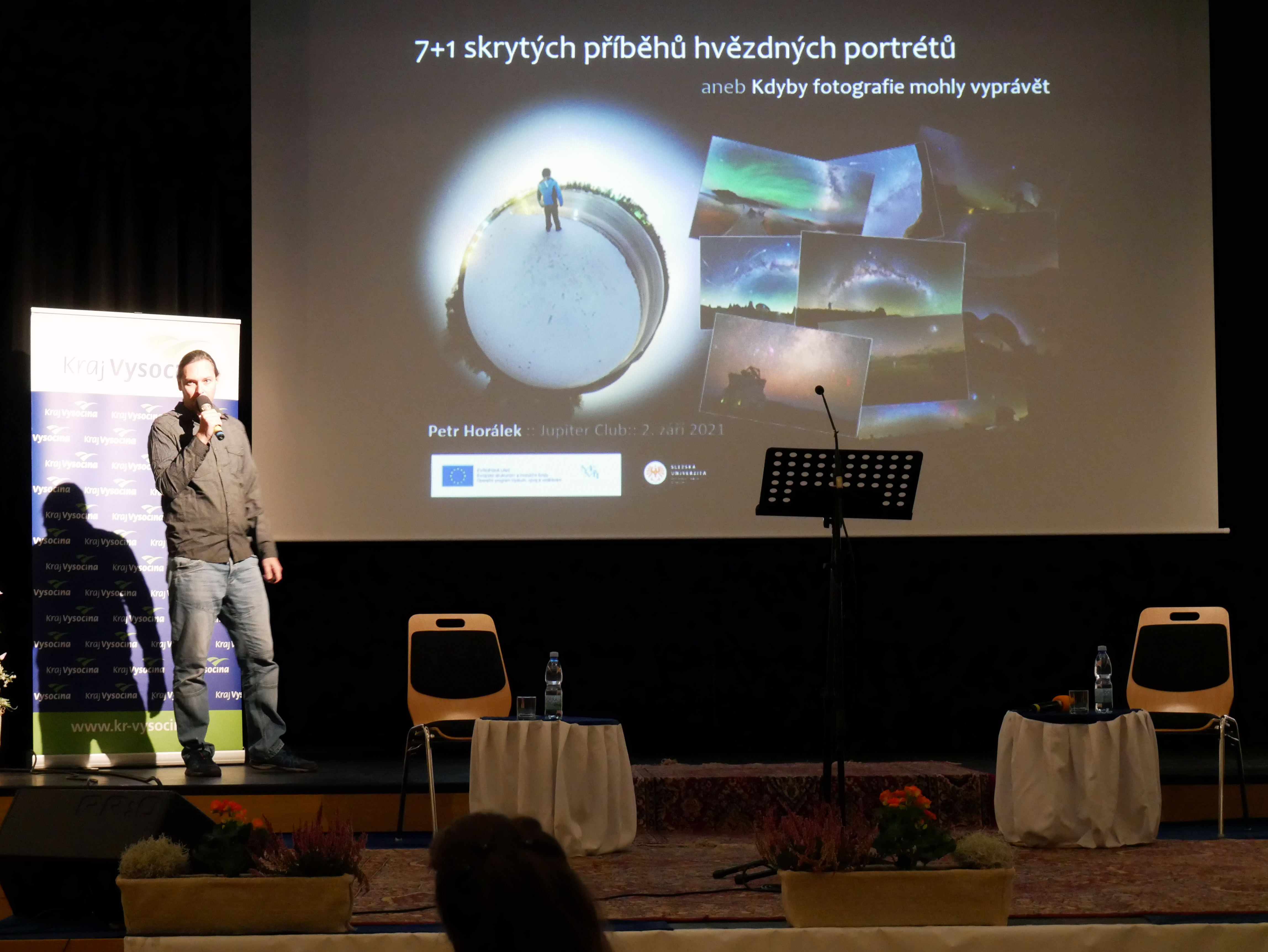 Fotograf a astronom, Petr Horálek, si připravil sedm příběhů, které vždy pojila touha po výjimečné fotografii. Pořizování snímků z různých míst přináší i svá úskalí, ať už cestovatelská nebo například s hrochy, nedostatkem kyslíku ve výšce 5 000 metrů nad mořem v observatoři Alma v Chile, s obyvateli Cookových ostrovů, kteří se bojí tmy nebo s lovem skřítků. Horálek publikum natolik zaujal, že se zřejmě zvýší poptávka po jeho knize Dobytí jižního hvězdnatého ráje. Člověk, který dokázal vyfotografovat všechny čtyři zatmění v jednom roce, si zaslouží velký obdiv. Bonusový osmý bod obsahoval také mimořádné sdělení o inspirativní osobě z kruhu rodiny pana Horálka. Prostor pro dotazy v závěru využil starosta města Alexandros Kaminaras s otázkou: „Do jaké země povede vaše další cesta?" Dle odpovědi následuje Skandinávie.