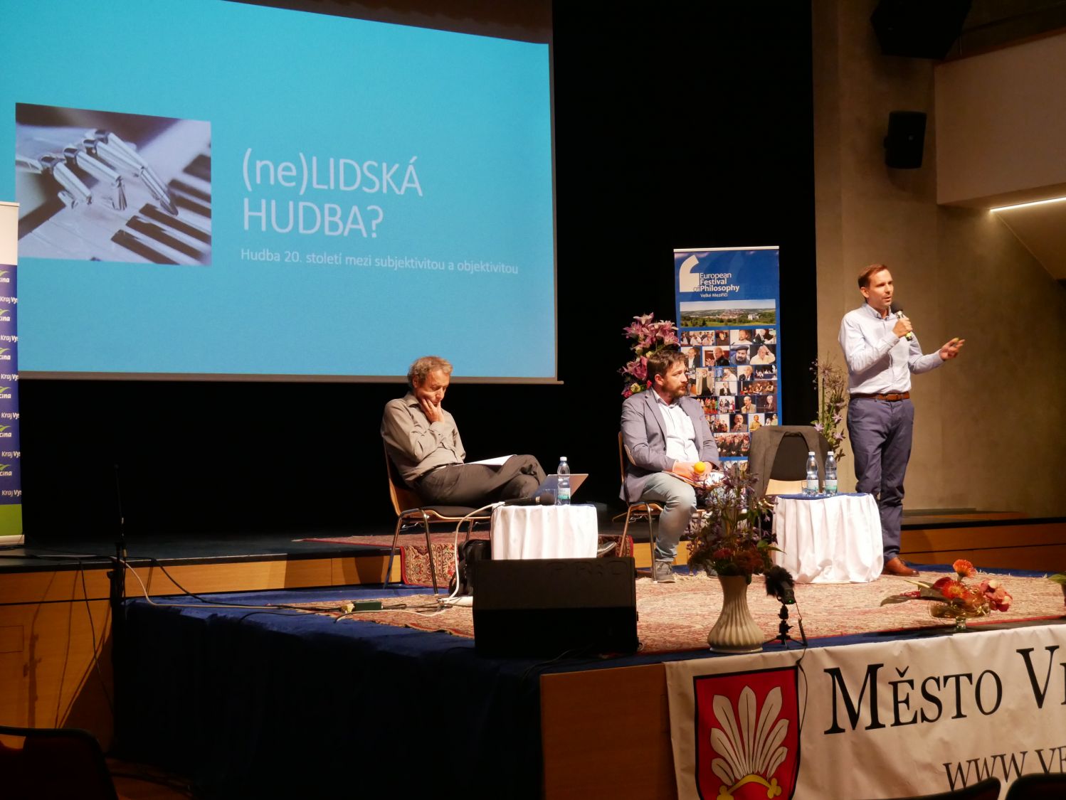 Bezprostředně po pohádkovém divadelním představení se v Jupiter clubu konala poslední festivalová přednáška s názvem Hudební kompozice – racionální prvky. První přednášející, muzikolog a vysokoškolský pedagog Martin Flašar, představil téma (Ne)lidská hudba? Hudba 20. století mezi subjektivitou a objektivitou. Během svého vyprávění vycházel z teze Milana Kundery, který ve svých esejích otevřeně přiznává, že v hudbě Varèse a Xenakise nalezl zvláštní útěchu spočívající ve smíření s nevyhnutelností konečnosti. Od této teze směřoval Flašar k dalším úvahám o roli člověka v hudbě 20. a 21. století.