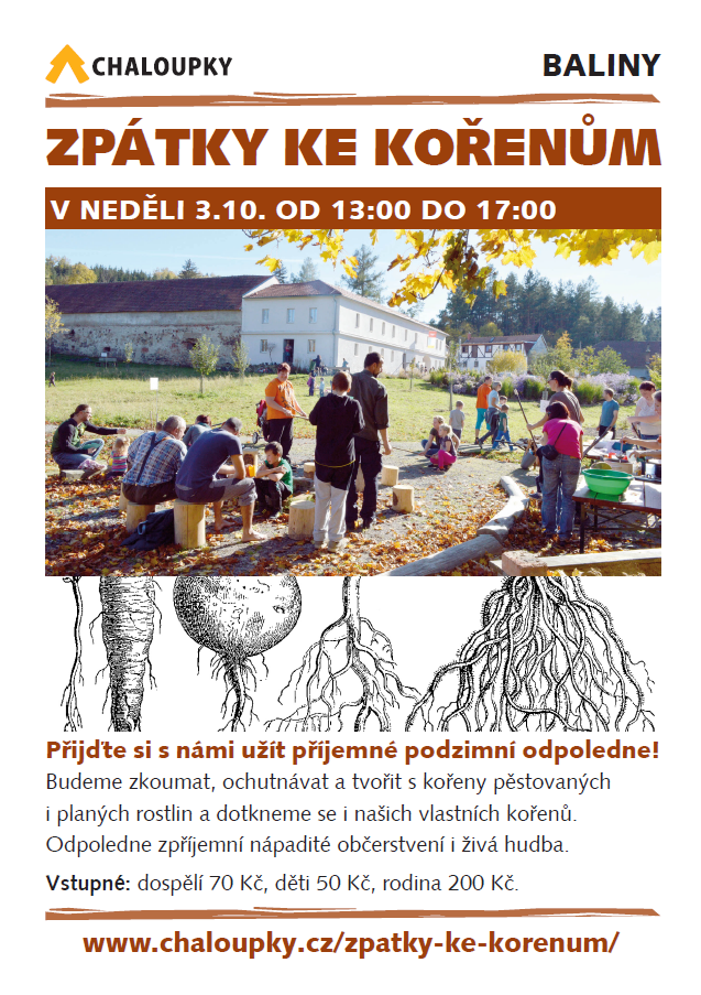 Zpátky ke kořenům. Tak se jmenuje akce, kterou v neděli 3. října od 13.00 do 17.00 pořádá ekocentrum Baliny u Velkého Meziříčí. Věnovat se bude kořenům všeho druhu. Kořeny budou zkoumány i ochutnávány, bude se s nimi tvořit. Čekají nás kořeny pěstovaných i planých rostlin. Ale to není vše.
