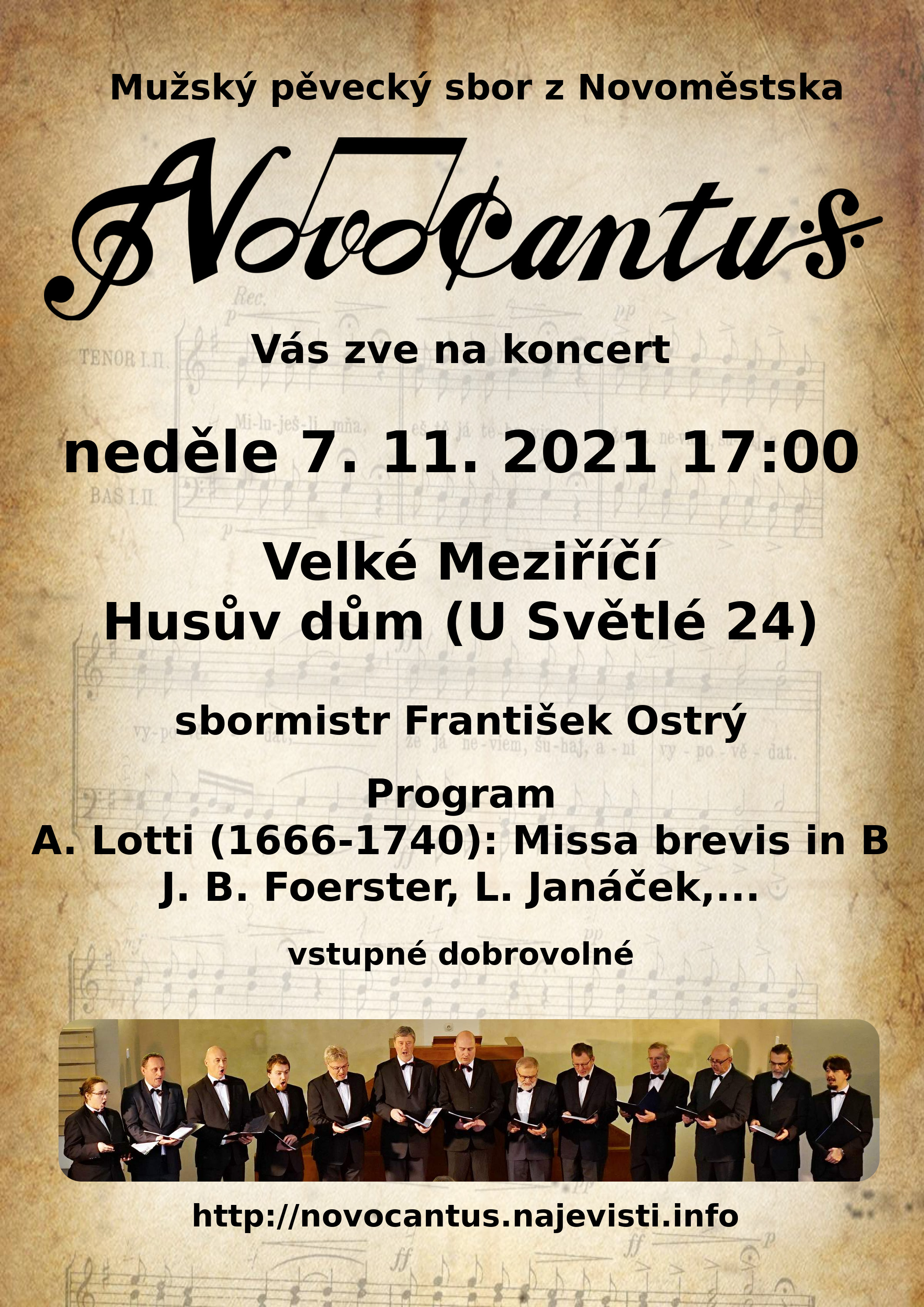 Mužský pěvecký sbor Novocantus pořádá 7. listopadu 2021 v 17:00 hodin koncert.
