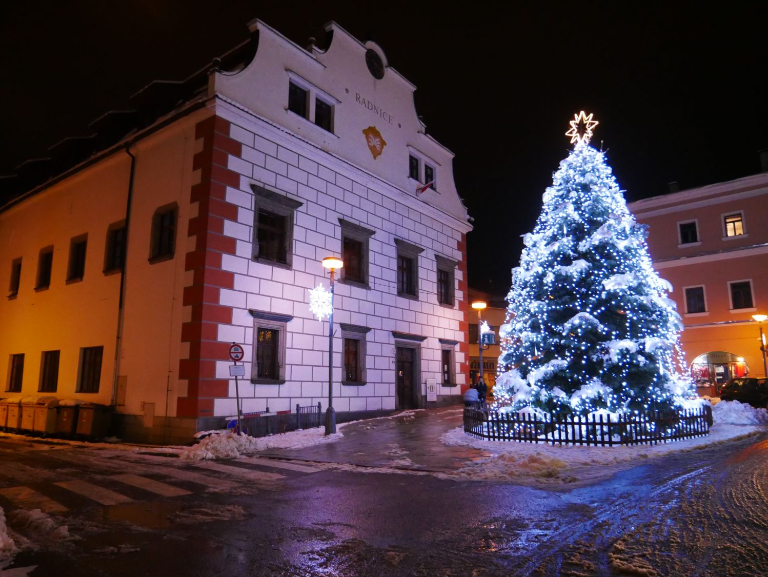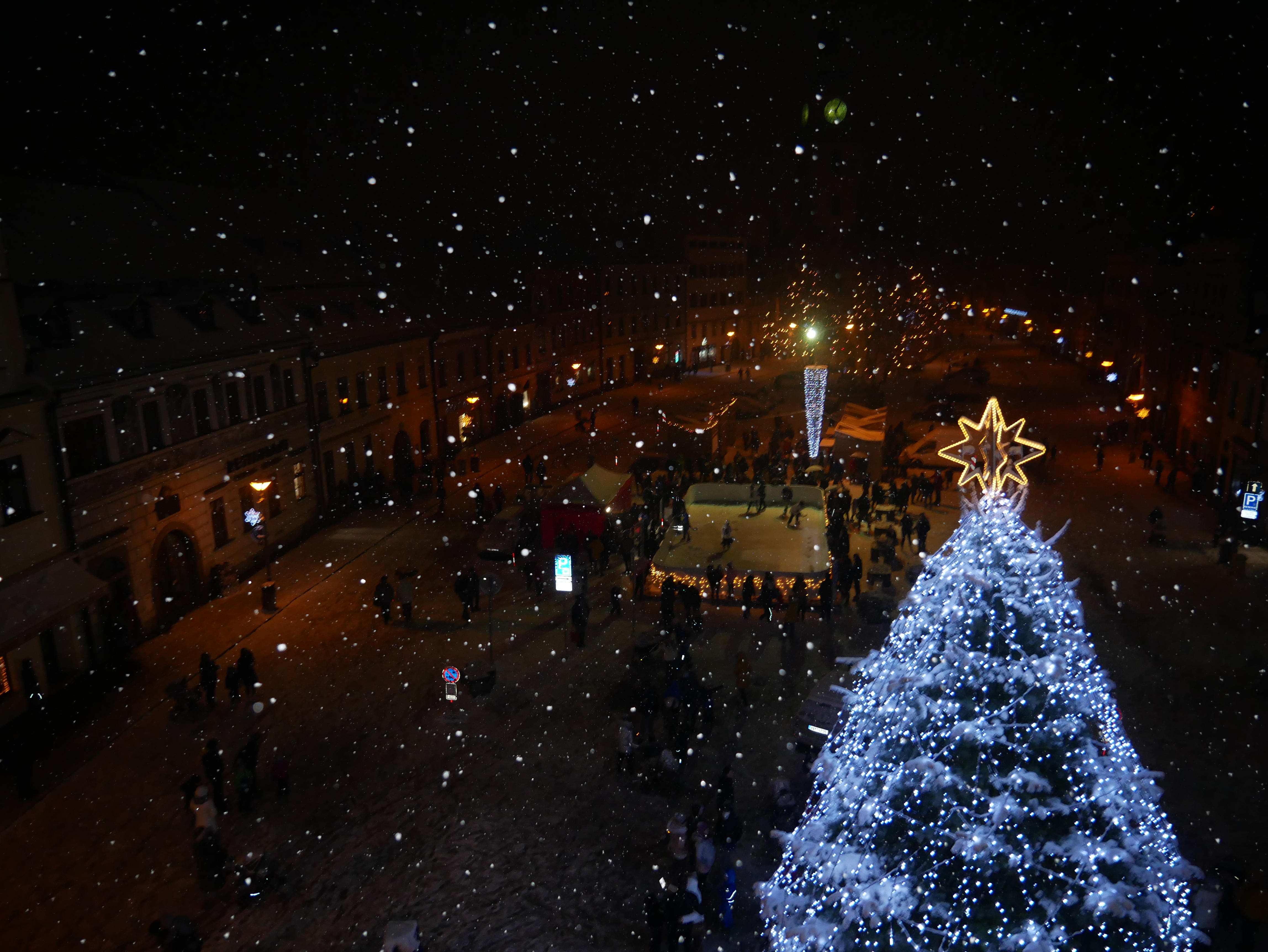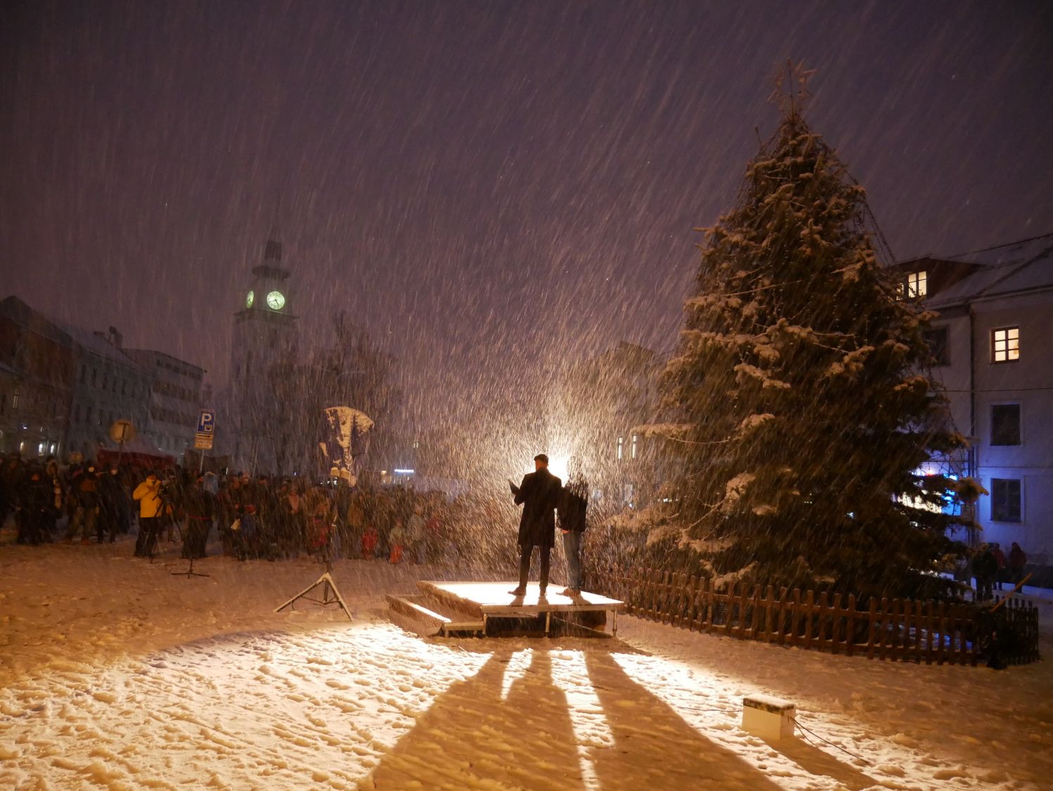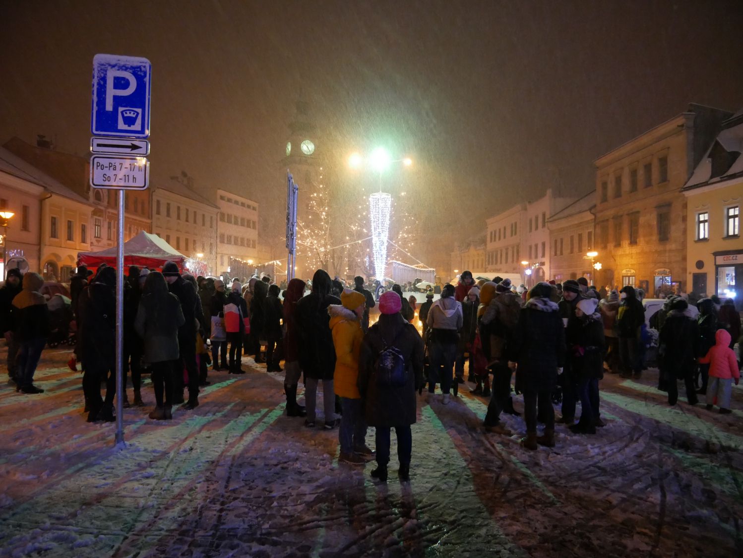 V páteční podvečer se na malém pódiu slova ujali hlavní představitelé města, ředitel Jupiter clubu Milan Dufek, místní farář Pavel Šenkyřík a ředitel Sportoviště VM Michal Hořínek. Společnými silami zahájili advent rozsvícením stromu. Jedle ojíněná, kterou přivezli pracovníci technických služeb z nedaleké obce Oslavičky, září letos v bílé barvě. Po následující dvě léta se osvětlení bude měnit. Barevná kombinace pro příští rok zůstane ovšem pro občany překvapením.