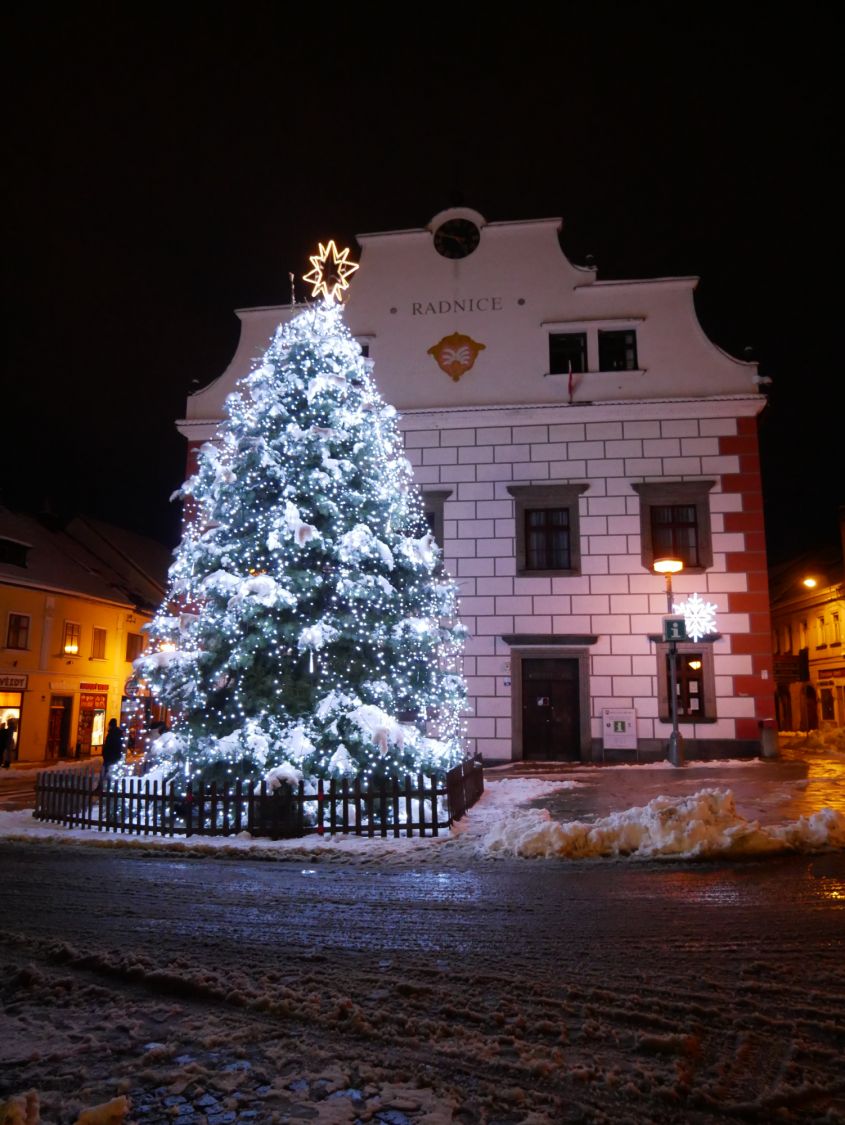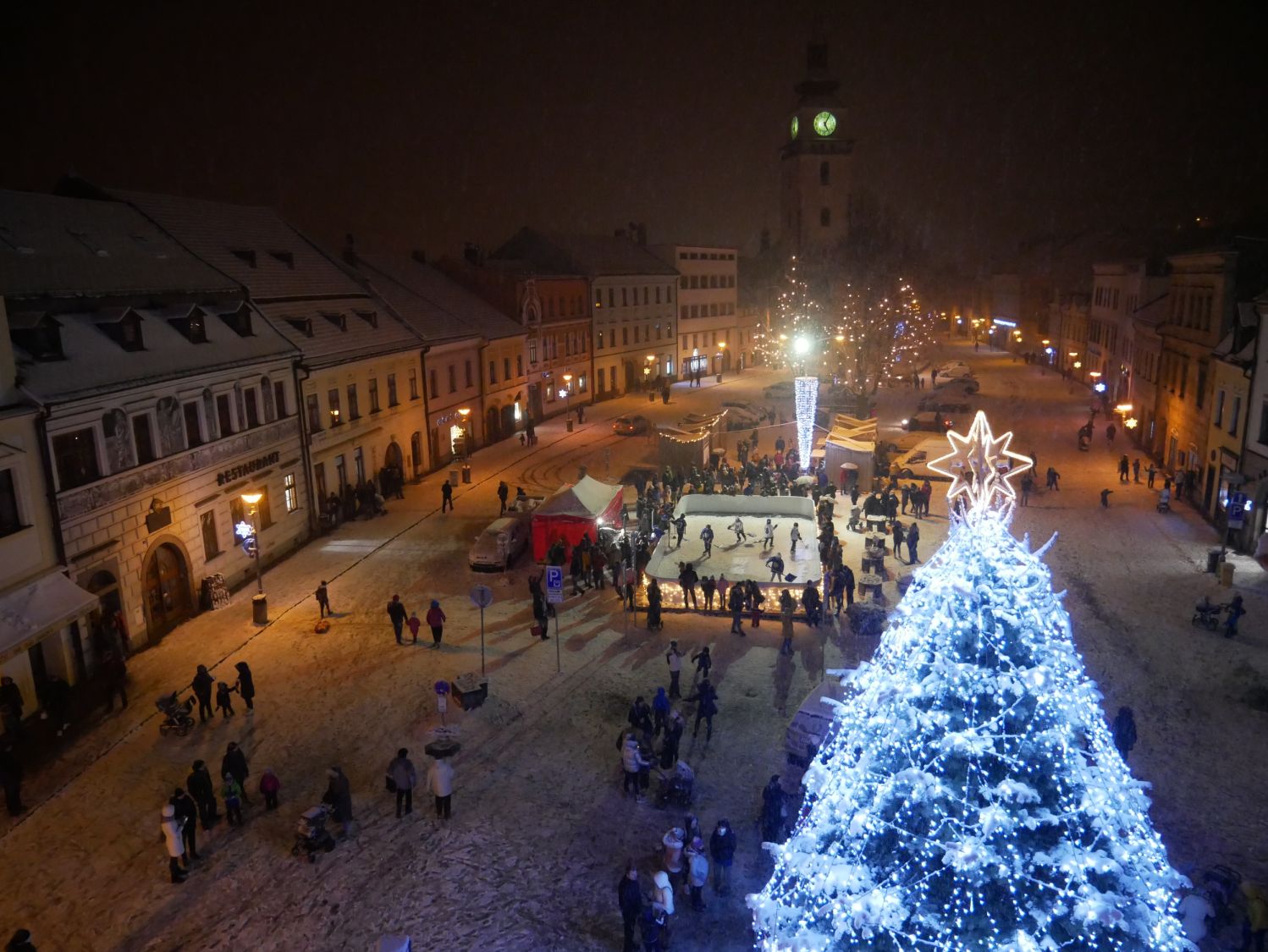 Město představilo adventní stánky s kluzištěm a rozsvítilo vánoční strom