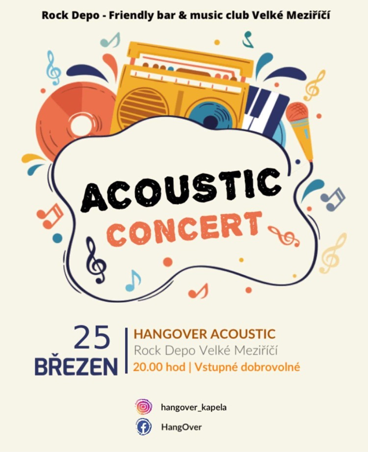 V pátek 25. března se můžete těšit na další koncert v baru Rock Depo. Tentokrát zde vystoupí kapela HangOver ve složení Michaela Zapletala, Jakuba Šimona a Martina Kružíka. Bar své dveře otevře v 18:00 hodin a již v 20:00 hodin začne koncert.