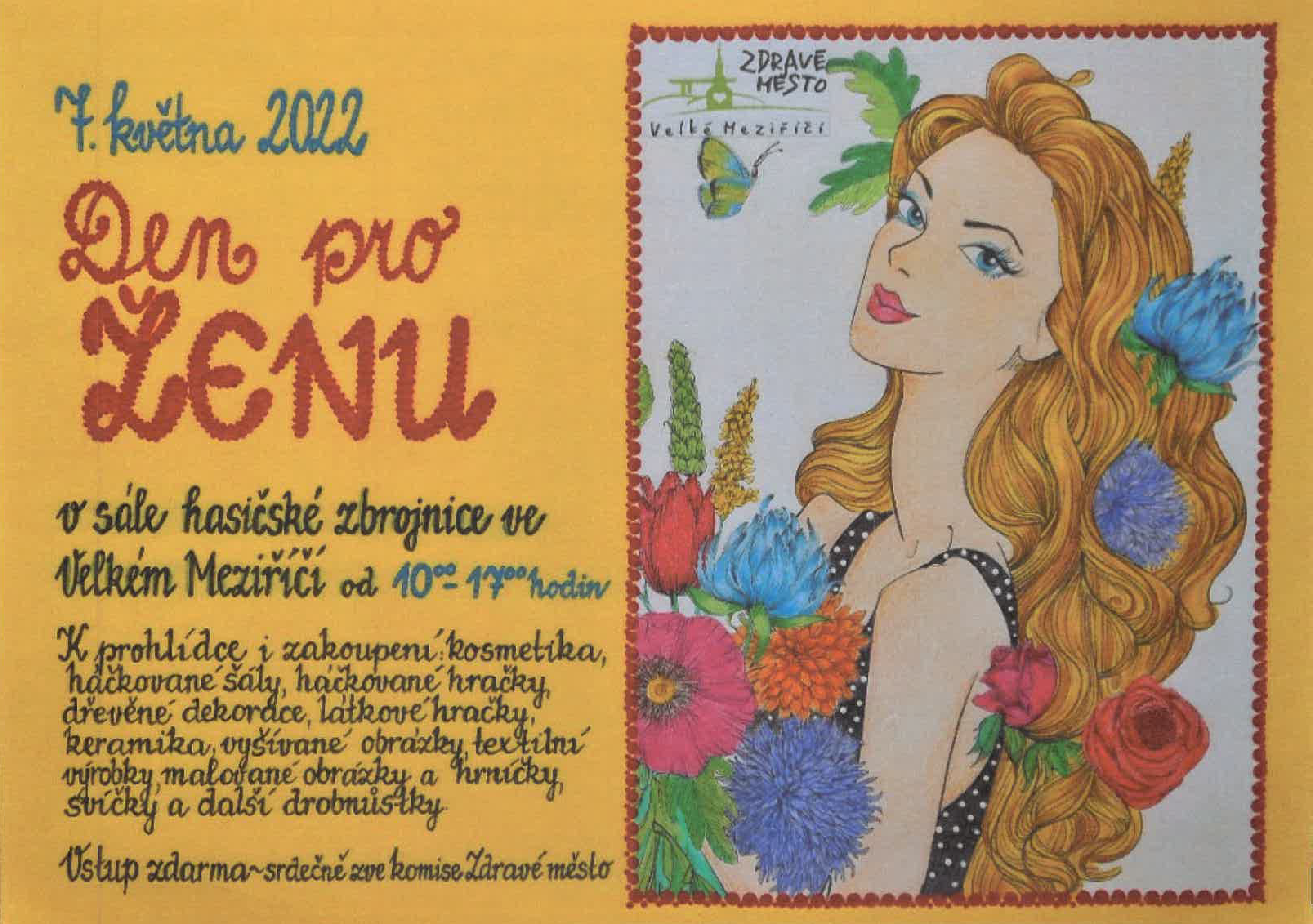 V sobotu 7. května se uskuteční akce Zdravého města Velké Meziříčí s názvem Den pro ženu. Hasičská zbrojnice na adrese Nad Gymnáziem 464/17 své dveře otevře již v 10 hodin. Předpokládaný konec akce připadá na 17. hodinu. Návštěvníci se mohou těšit například na háčkované šály, dřevěné dekorace, látkové hračky, kosmetiku a podobně.