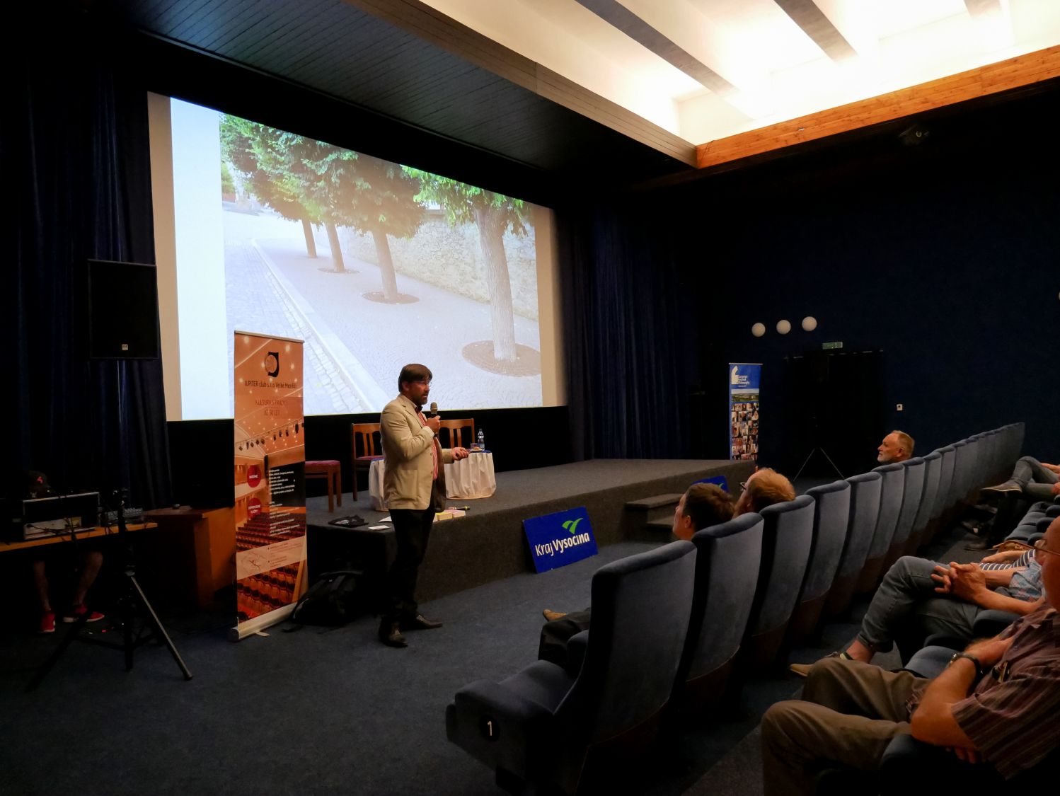 Následovala přednáška vedená krajinářským architektem Petrem Veličkou, který se zabýval hlavně městským prostředím. Hned na počátku své prezentace se zaměřil na chodníky a jejich někdy nešťastnou „modernizaci", parkování na nich a jejich znehodnocování.