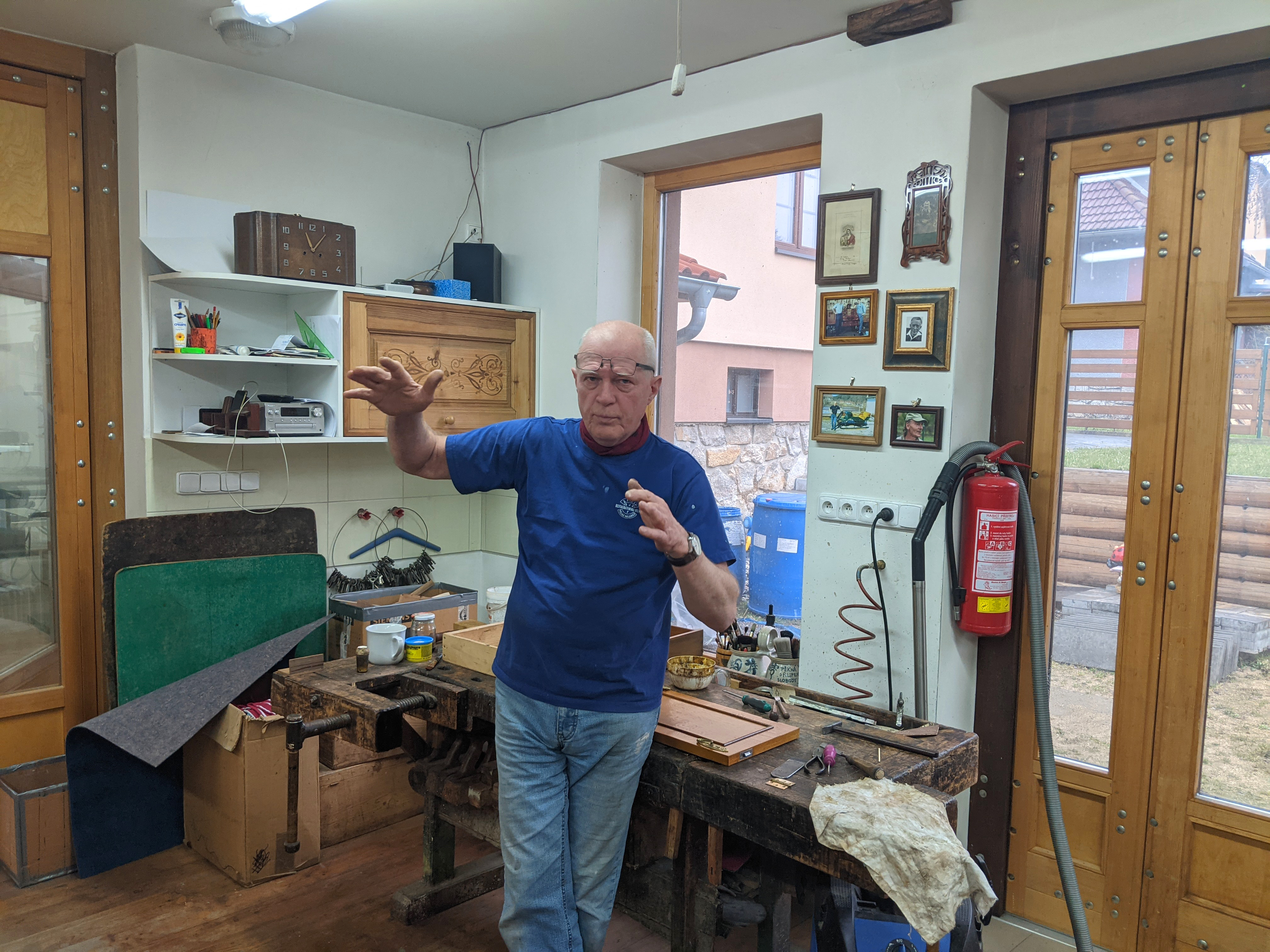 Josef: Já byl na stáži v Litvě, kde jsem přednášel povrchové úpravy a práci s kůží, a tam to mají zařízeno velmi jednoduše. Památkáři mají oceněné jednotlivé práce. Třeba: 1 dm zlacení stojí tolik a tolik, 1 dm politury tolik a tolik... Takže to se potom podstřelit ani nedá. Je to jednoduché a jasné.