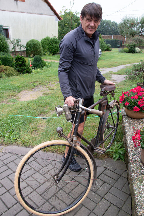 Já už jsem nějaká stará kola doma měl. Ženě jsem nechal zrenovovat Ogara z roku 1931 a vyrazili jsme spolu na akci do Nového Města na Moravě. Byli tam lidi z celé republiky, spousta z nich ustrojených v dobových oblecích, jeden s flašinetem. To mě zaujalo. Rok nato jsem jel do Brna na závody ke 150 letům od prvního závodu. Byl tam pan Zimovčák, který mě zlákal k vysokému kolu. Dal mi kontakt na pána, který vysoká kola vyrábí. Tak jsem si je nechal udělat. Rok to trvalo, než je vyrobil, v srpnu 2020 jsem si je přivezl domů a od té doby na něm jezdím.