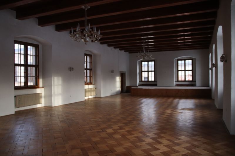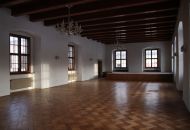 V horním patře pivovaru směrem do náměstí. Část budovy, která je za malým dvorkem (atriem), patřila k výrobě.
