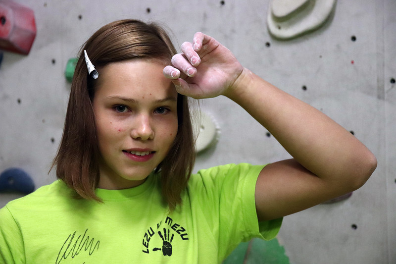 Adéla Bajerová z Velkého Meziříčí se od devíti let věnuje lezení. Nyní je jí patnáct, je studentkou kvinty velkomeziříčského gymnázia a lezení má jako hlavní zálibu, která pohlcuje veškerý její volný čas. Jezdí na celorepublikové soutěže a letos se drží v tabulkách mezi pátým až osmým místem. V budoucnu by chtěla pracovat se zvířaty, láká ji veterina, nebo taky fyzioterapie. A v lezení hodlá vytrvat. „Chci se mu věnovat pořád, co nejvíc. Dokud to půjde, chci lézt,“ říká.