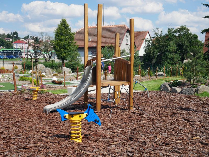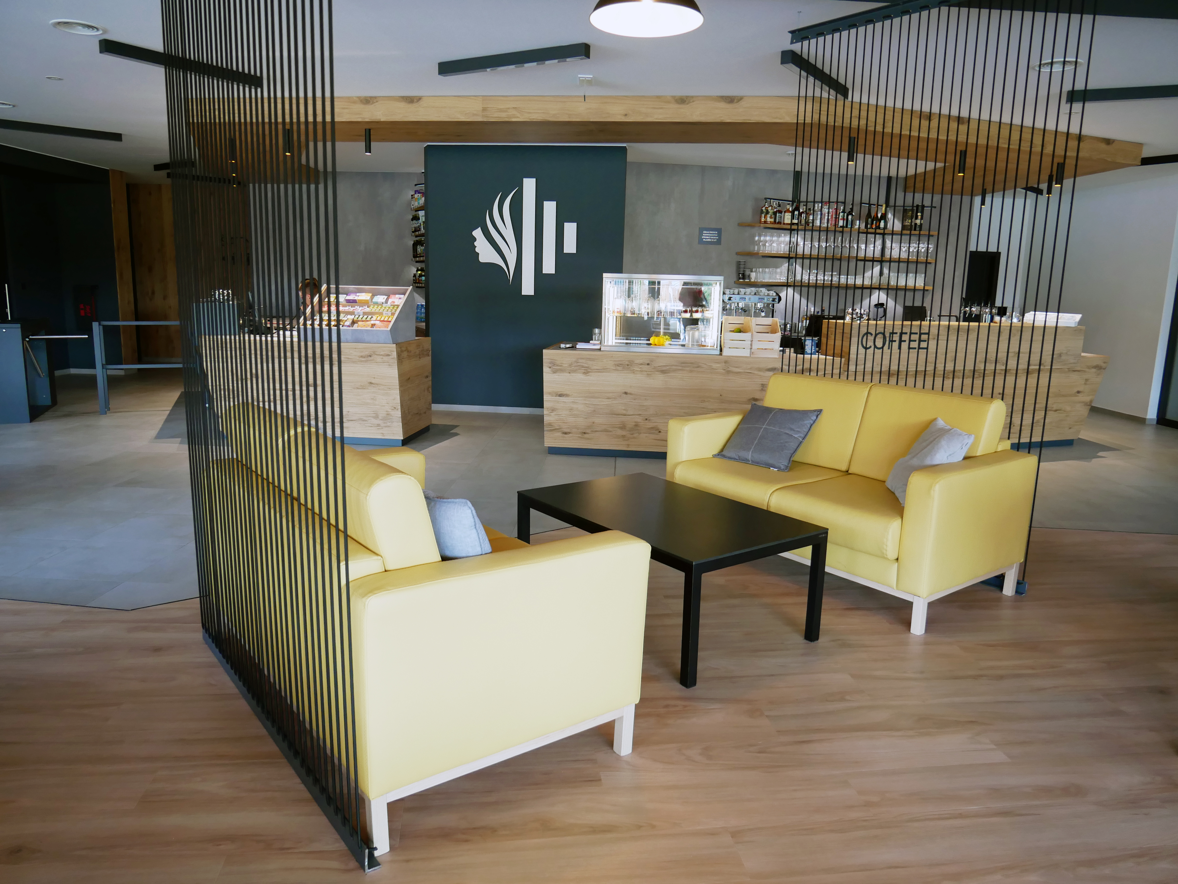 Pro mámy s dětmi máme dětský koutek, aby si mámy mohly dát v klidu kafe bez toho, aniž by se bály, jestli jim dítě spadne pod auto. Chtěla jsem, aby se v tomto centru mohli najít všichni, jak mámy s dětmi, střední děti, tak střední věková skupina a senioři. Proto je tu třeba golf, na který rádi přijdou i prarodiče s vnoučaty. Podporou centra je kavárna, kde můžete zakončit svoji návštěvu, dát si kvalitní kávu, dobrý dort. Nemáme v nabídce fitness dorty, protože já mám na to jiný názor, takže máme klasické dorty z pravého másla. Produkty v kavárně si vyrábíme sami, takže vy, paní redaktorko, tady pijete bezovou limonádu vyrobenou z čerstvě natrhaného bezu a uvařenou tady u nás bez chemie. Lidé se na začátku divili a teď se k nám vracejí na naši ledovou kávu, protože tu zásadně podáváme s vařeným cukrem, který dostanete v malé skleničce. A proč? Protože klasický krystalový cukr se v ledové kávě nerozpustí. K dostání jsou k jídlu fresh bagety a panini. Mým cílem bylo, vzhledem k ideální poloze u dálnice, udělat i meeting point pro obchodníky, proto je kavárna navržená tak, aby měl každý stůl své soukromí, všude jsou zásuvky pro notebooky a nabíječky. Chtěla jsem, aby se tady dalo dobře parkovat, takže jen v areálu je 35 parkovacích míst a samozřejmě mnoho parkovacích ploch je i v blízkém okolí. Samotná budova má 2 000 m2 a za její stavbu mohu poděkovat místní firmě BUILDING centrum.