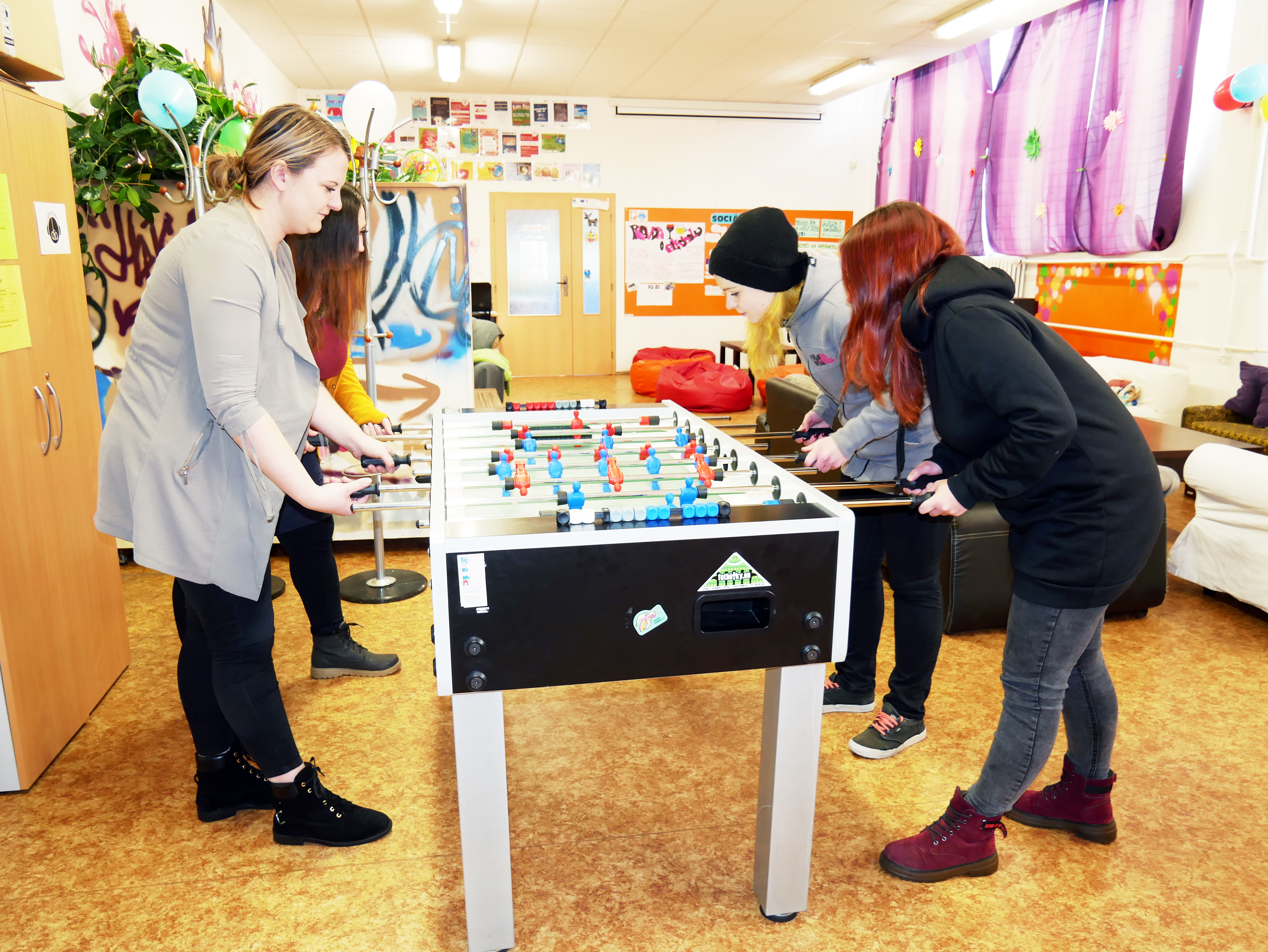 To je velmi různorodé. Děti a mládež mají možnost k nám na klub přijít kdykoliv v odpoledních hodinách a povídat si s námi o tom, co zrovna prožívají nebo potřebují řešit. Většinou jsou to nějaké problémy v partě, v rodině, ve škole, experimentování s návykovými látkami, sebepoškozování nebo se jen nudí a neví, jak se zabavit. Mají možnost také využít aktivity v zařízení, jako je kulečník, fotbálek či nějaké stolní hry. To skvěle funguje u těch dětí, které se stydí s námi o něčem mluvit, ale když s námi hrají nějakou hru, tak nemají problém se rozmluvit a už na to můžeme nějak navázat. Máme k dispozici také kontaktní místnost, kde může pracovník s uživatelem řešit nějaké téma v soukromí. Zprostředkováváme také doučování ve spolupráci s našimi dobrovolníky. Do toho chodíme dvakrát týdně do takzvaného terénu – to znamená, že monitorujeme místa, kde se mladí lidé scházejí a říkáme jim o naší službě, tak aby věděli, že se na nás mohou obrátit v případě potřeby nebo si dáváme sraz s těmi, kteří z nějakého důvodu nechtějí přijít na klub. Dvakrát týdně také dojíždíme do Velké Bíteše.