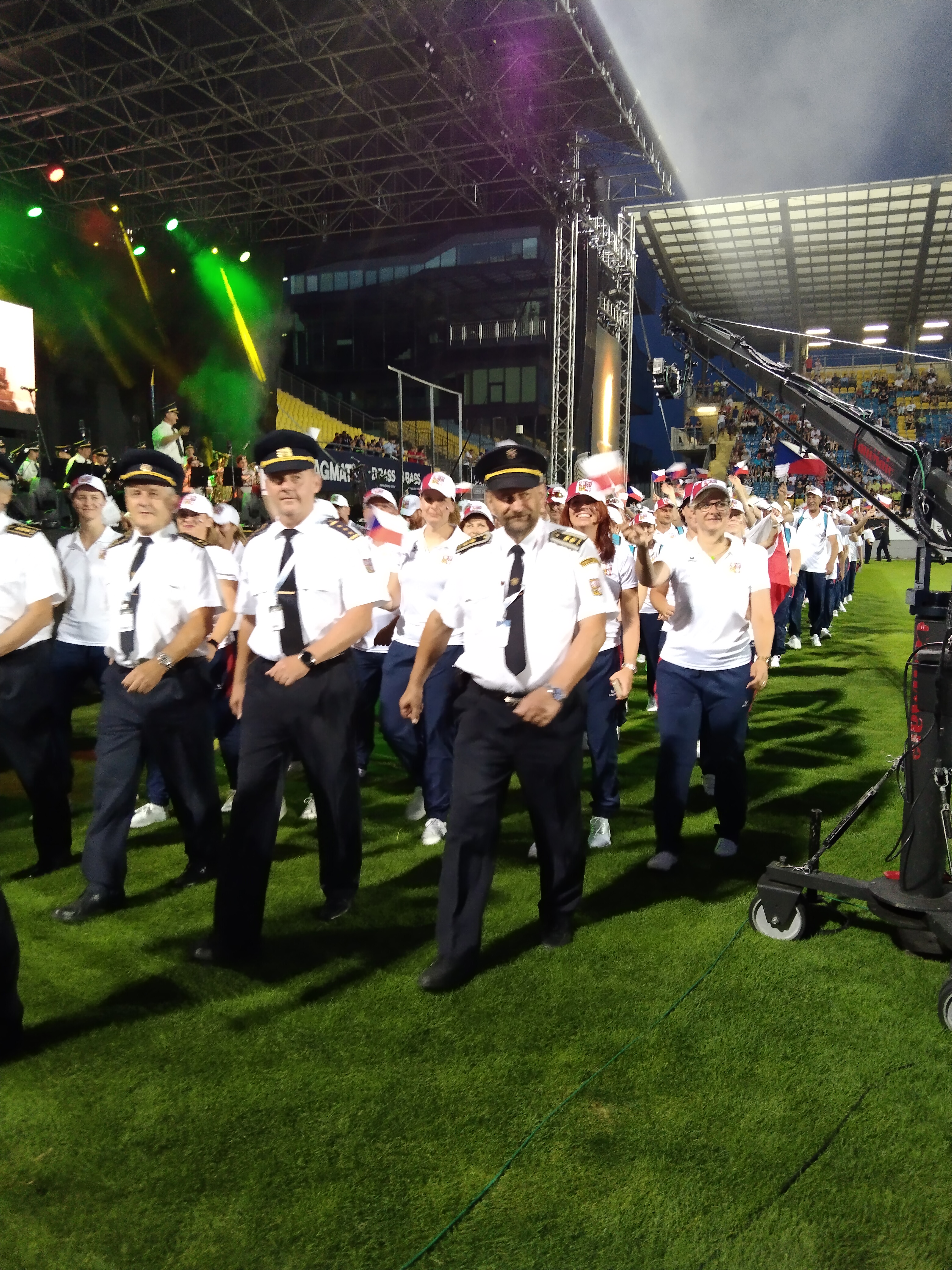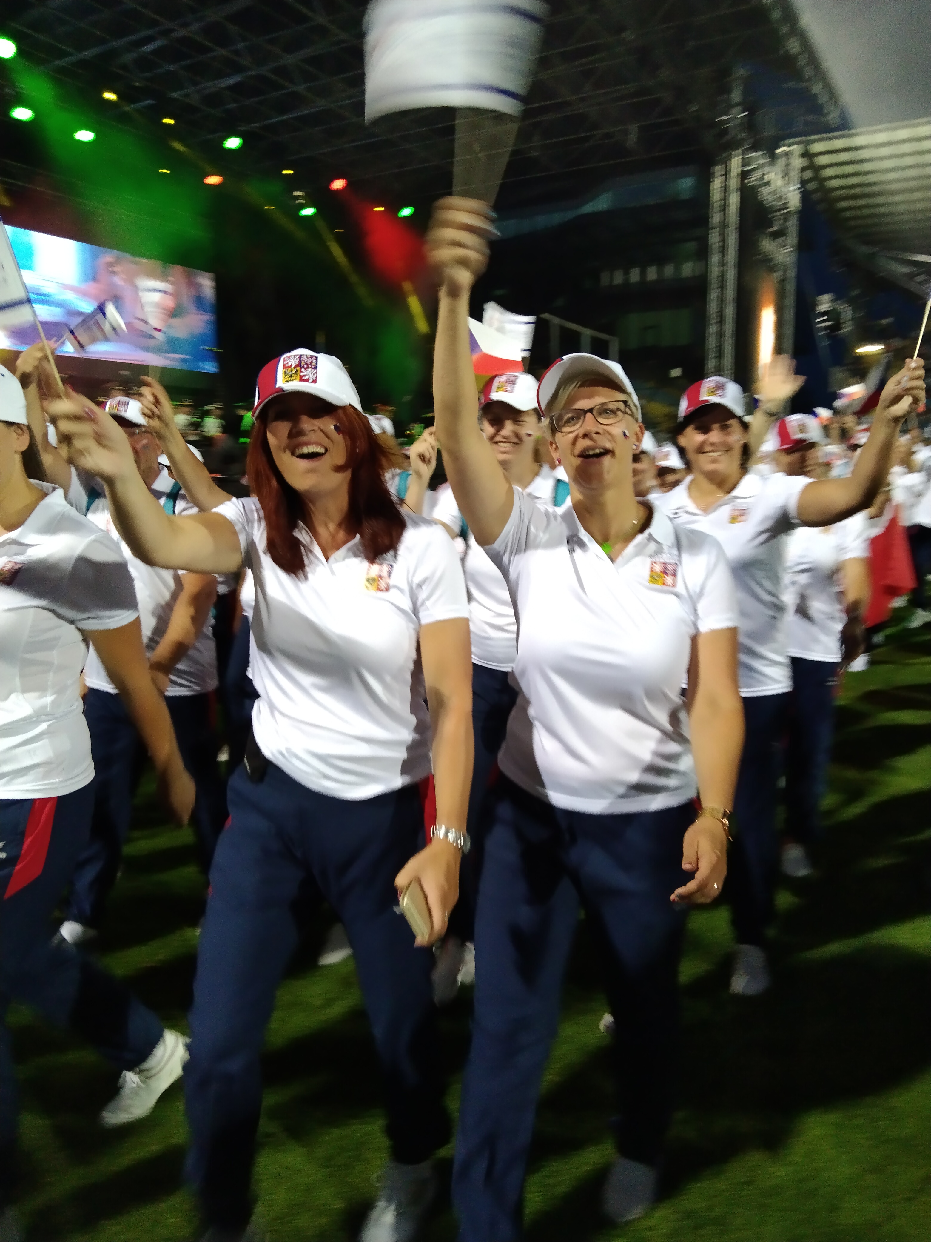 Ve středu v odpoledních hodinách proběhlo slavnostní zahájení hasičské olympiády a zapálení olympijského ohně. Naše ženy byť oslabené o jednu členku šly v čele české výpravy. Celý ceremoniál trval něco přes dvě hodiny i přípravou před stadionem. Po slavnostním zahájení probíhalo po celém městě několik koncertů, výstav a her.