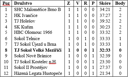 TJ Sokol Velké Meziříčí – HBC Olomouc 1966 32:33 (16:16)
