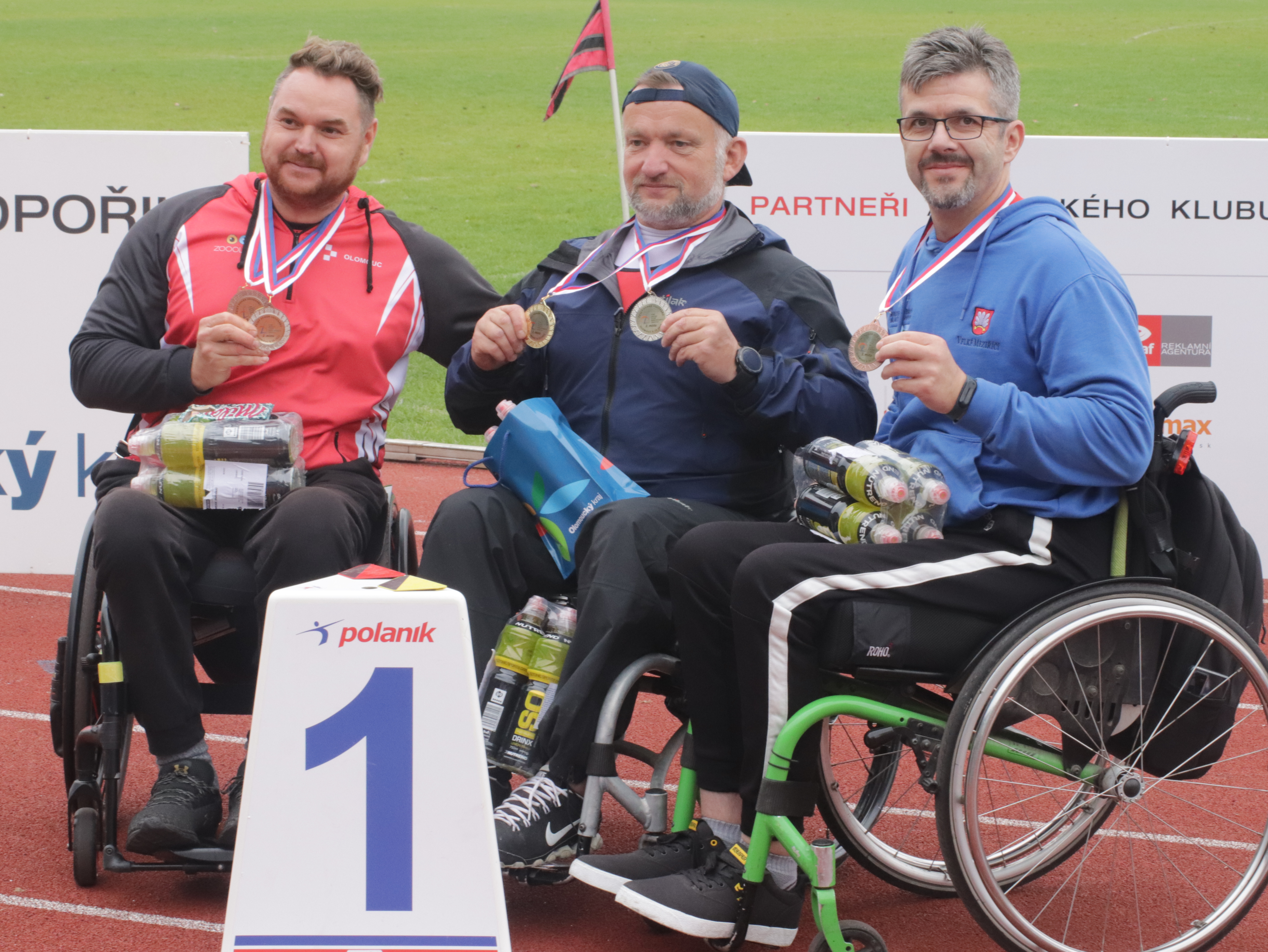 Z Velkého Meziříčí si v Olomouci poprvé zazávodil i Radek Coufal v disciplíně hod oštěpem a diskem. Krásný stadión přizpůsobený pro handicapované sportovce přivítal asi 40 sportovců z různých koutů České republiky. Radek se představil hned na úvod v disciplíně hod oštěpem. Výkon 13,39 metrů byl v této sezóně asi nejslabší, ale trochu překvapivě stačil na 3. místo. V hodu diskem byla silná konkurence, slušný výkon 16,69 metrů nestačil na medailové pozice.