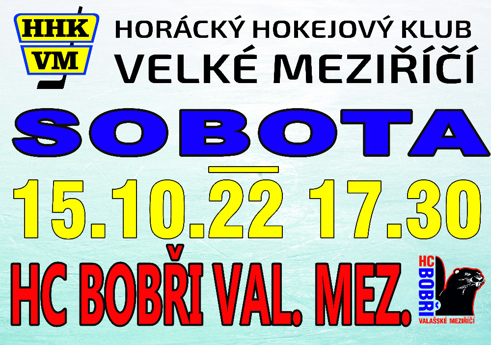 sobota 15. 2. 2022 HHK Velké Meziříčí – HC Bobři Valašské Meziříčí, začátek utkání v 17:30 hodin (zimní stadion Velké Meziříčí)