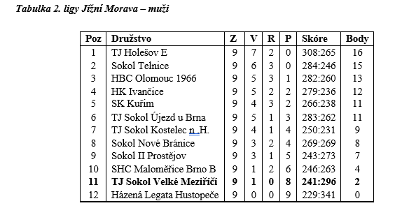 Sokol Kostelec na Hané - TJ Sokol Velké Meziříčí 32:19 (12:11)
