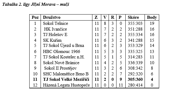 Házená Legata Hustopeče – TJ Sokol Velké Meziříčí 22:33 (11:16)