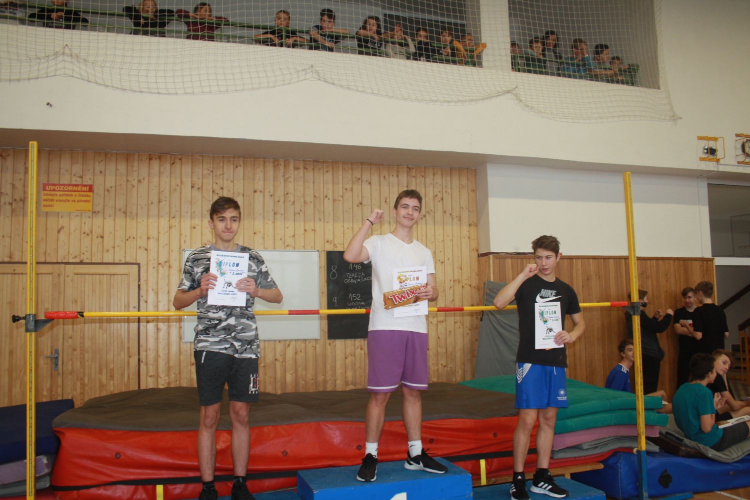 Deváťáci měli poměrně překvapivého vítěze v osobě Tomáše Březky, který si vylepšil svoje dosavadní maximum na 145 cm, druhý skončil Martin Beneš – 135 cm, třetí příčka po dramatickém rozeskakování nakonec patří Štěpánu Janštovi.