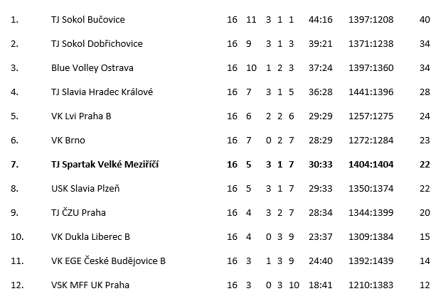 V sobotu přijel ambiciosní celek z Ostravy. Záložní družstvo extraligového Black Volley určitě nepřijelo prohrát. Sebevědomí z nich tryskalo v plném proudu. První set 25:12 pro nás. Rána do palice. I v druhém setu vedeme 17:12. Dále jsme sice udělali nějaké chyby, nebo spíš jsme nebyli důrazní v útoku a soupeř pomalu dotahoval. I tak jsme do koncovky šli se slibným náskokem 23:20. Následovala doslova detektivka. Najednou jsme prohrávali 23:24, 24:25, zase vedli 26:25, kazíme podání i následný útok, takže 26:27, abychom to nakonec umlátili na 29:27. Další set téměř jak přes kopírák. Nehazardovali jsme s krásným vedením 2:0 na sety a vytvořili jsme si i v tomto setu náskok až na 20:12. A opět jsme trochu polevili až na 21:19. Pak jsme ale zabrali, a hned první mečbol se za stavu 24:21 proměnili ve vítězství. Tím jsme si svou bilanci vyrovnali na 8 výher a 8 proher a vyhoupli jsme se na 7. místo tabulky. Zahráli všichni dobře.