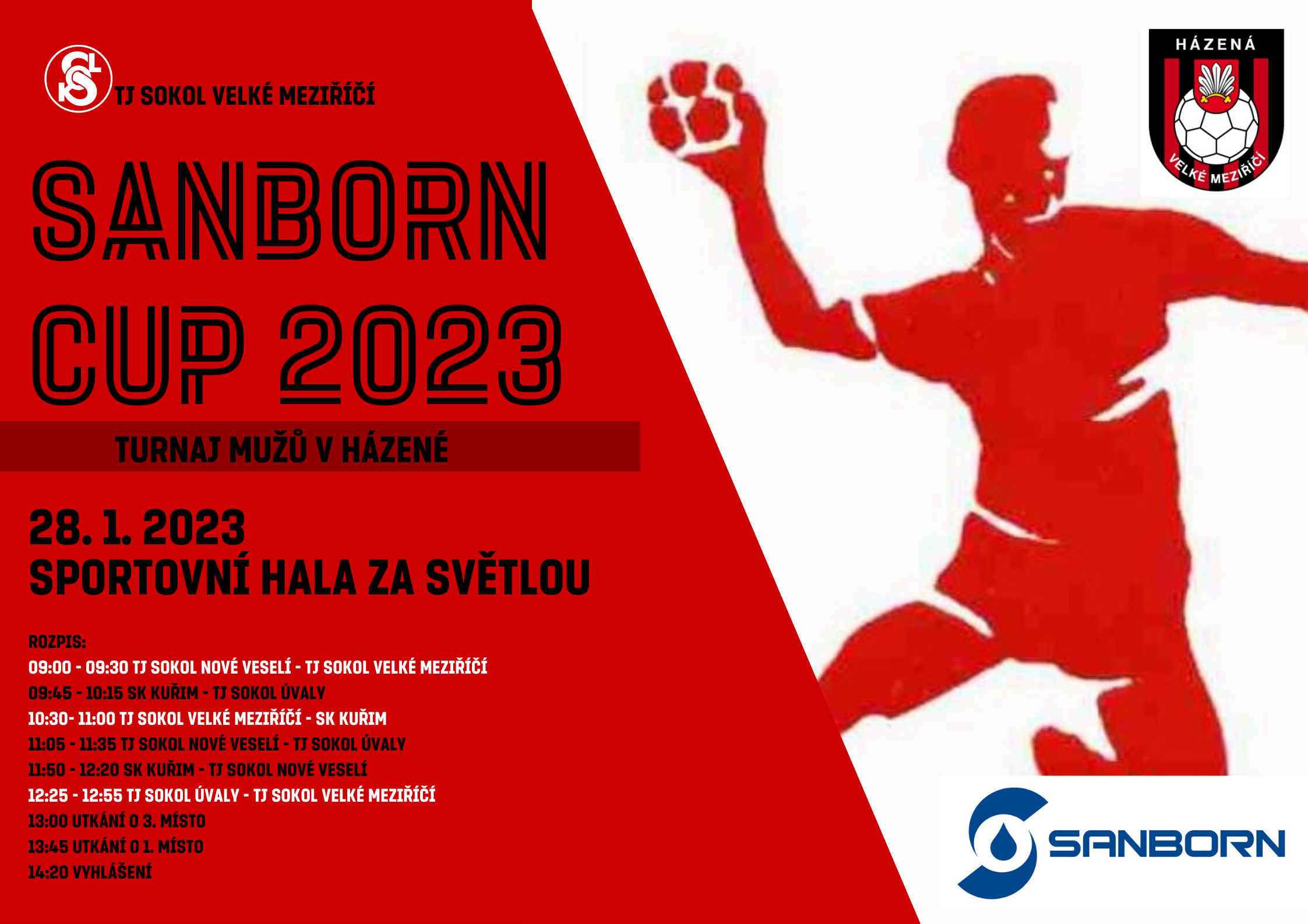 V sobotu 28. ledna proběhne turnaj mužů v házené neboli SANBORN CUP 2023. Fandit můžete přijít do Sportovní haly za Světlou ve Velkém Meziříčí.