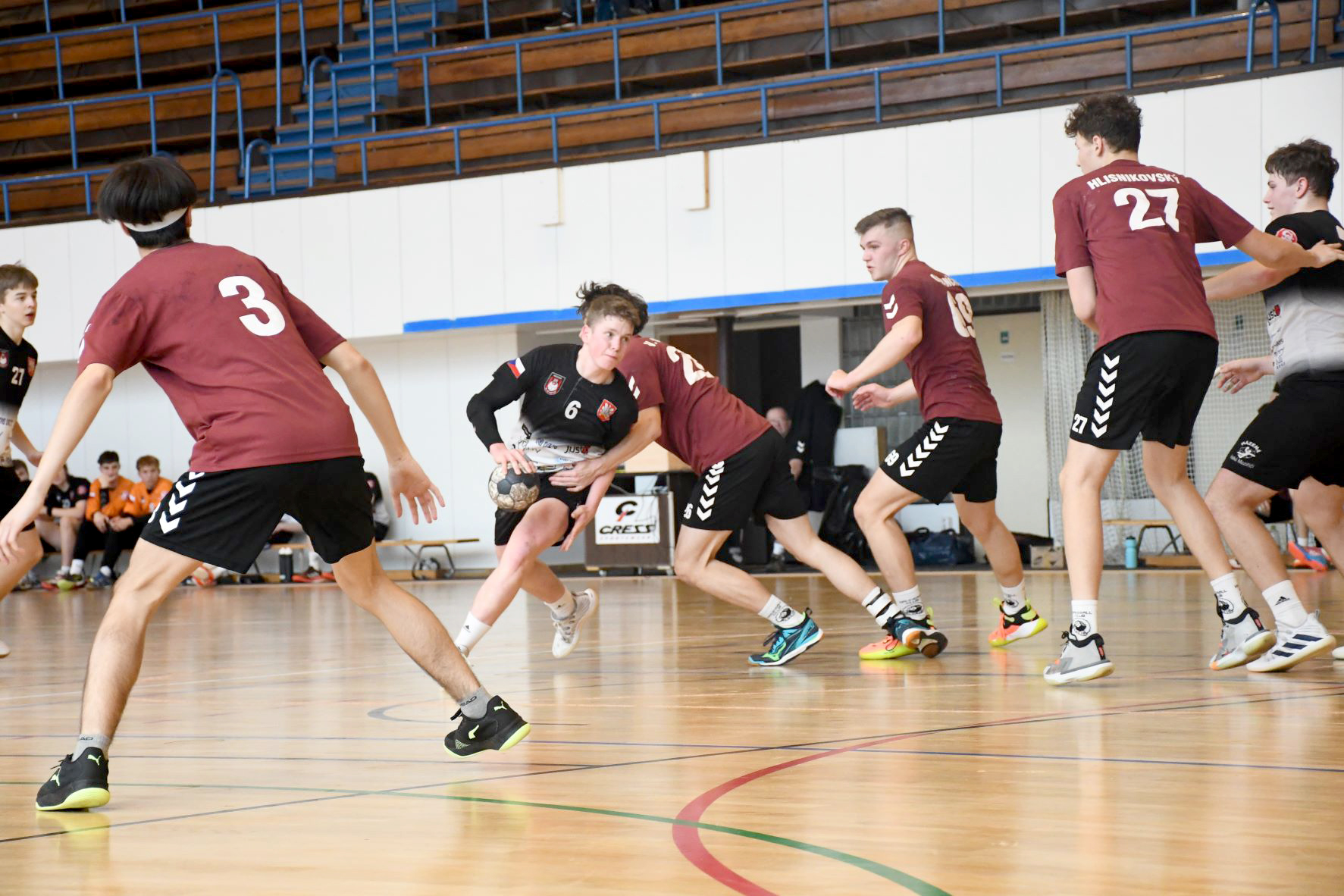 První poločas byl z naší strany spíše zahřívací. Dlouhá cesta zřejmě vykonala své, a i když od začátku bylo vedení na naší straně, stále to bylo o pouhé dvě až tři branky. Až ve druhé části poločasu se dorostenci trhli na pětibrankový rozdíl, který drželi až do poločasového hvizdu.