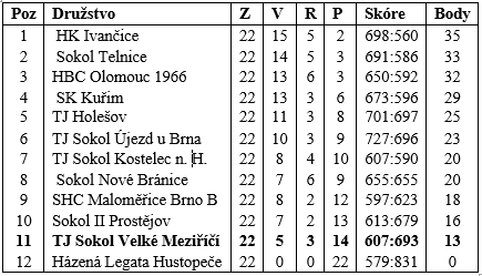 I přes výhru s dnešním výsledkem spokojeni být nemůžeme, jelikož naše obrana ve druhé polovině utkání byla opravdu špatná. Co nás ale může těšit je to, že na nově budovaném týmu jde vidět vzrůstající trend, což se projevilo i tím, že v jarní části jsme na domácí palubovce nepoznali hořkost porážky. I přesto celkové umístění v letošním ročníku zůstalo pod očekávání, když jsme se ziskem 13 bodů skončili na předposledním místě, což nám ale zajistilo ligovou příslušnost i do příští sezony.