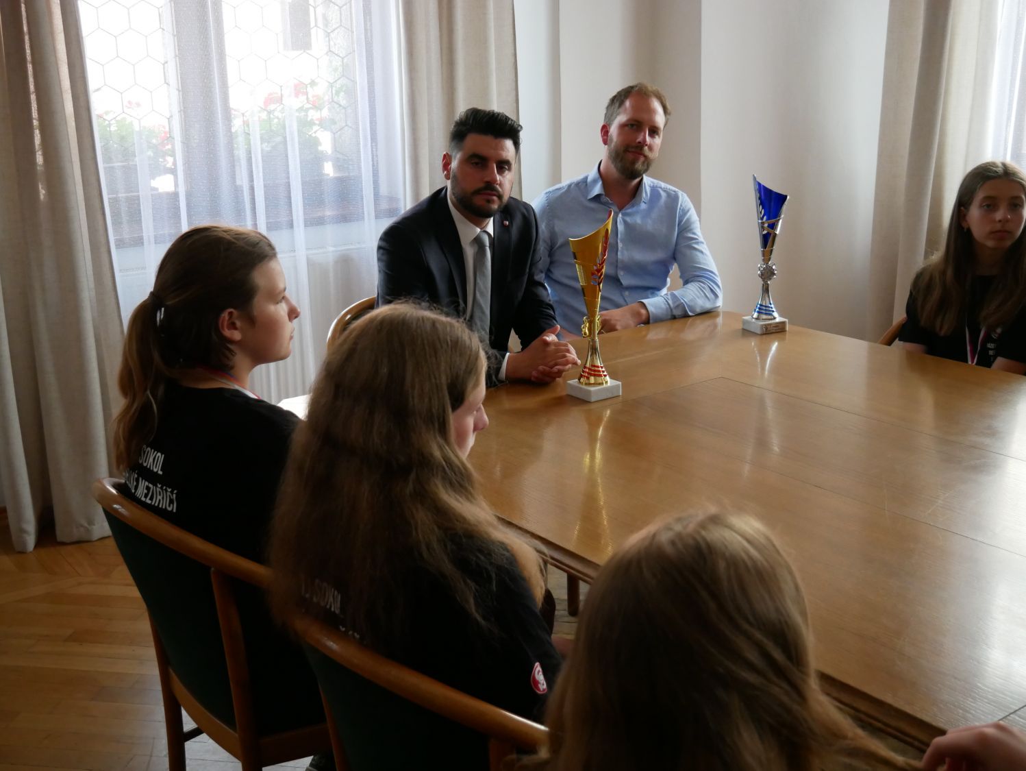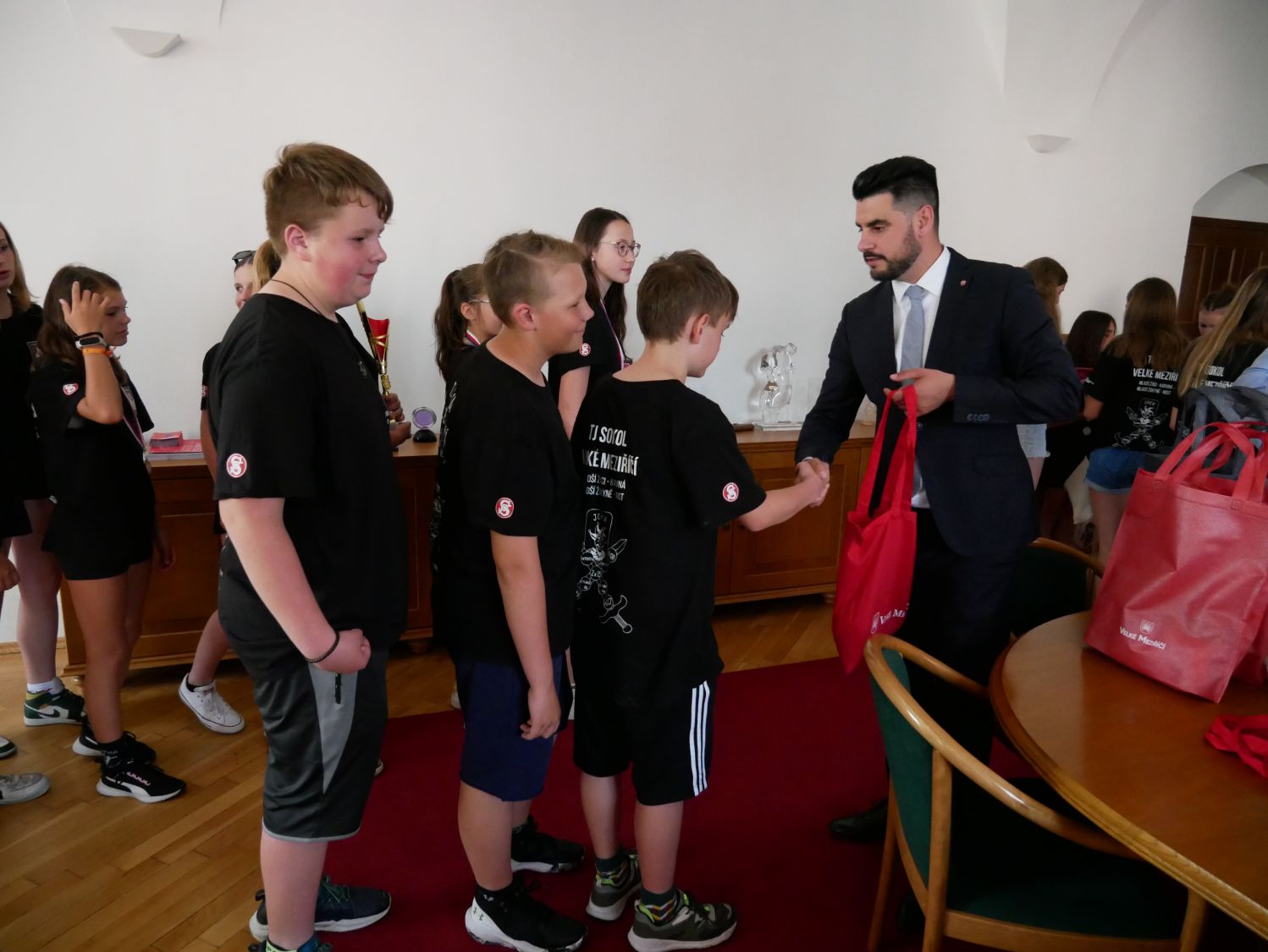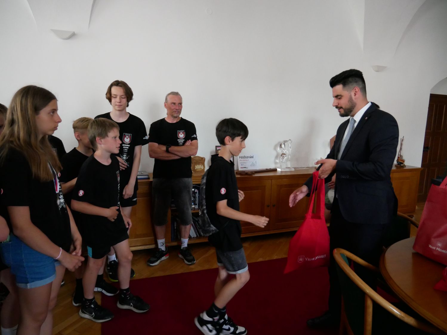 Mladí házenkáři si s vedením městě neformálně popovídali, společně se vyfotografovali a poté z rukou starosty a místostarosty převzali dárky jako poděkování za skvělou reprezentaci města.