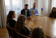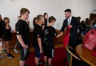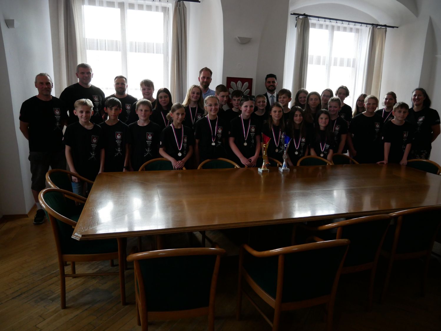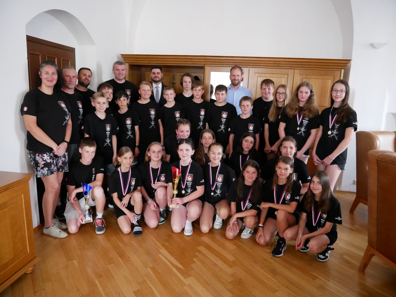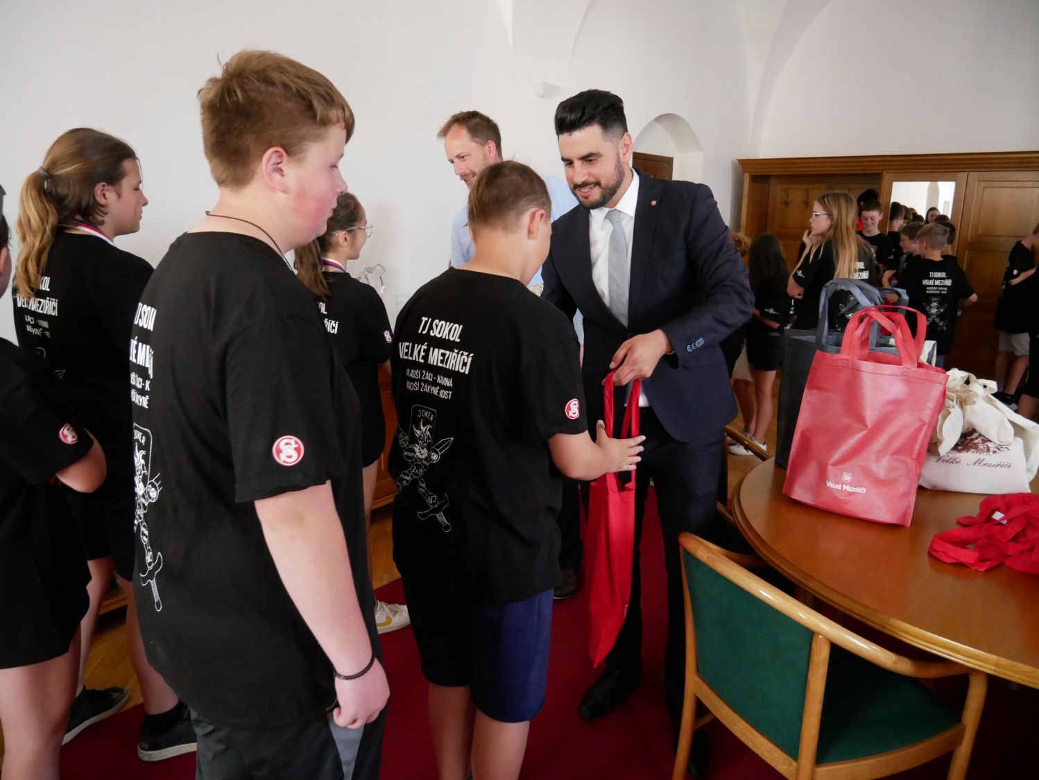 Mladí házenkáři si s vedením městě neformálně popovídali, společně se vyfotografovali a poté z rukou starosty a místostarosty převzali dárky jako poděkování za skvělou reprezentaci města.