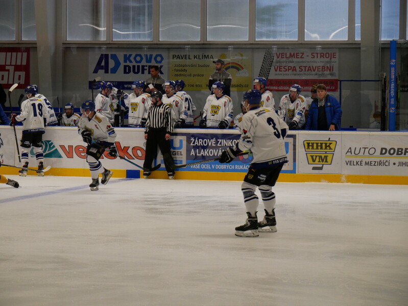 Utkání 7. kola se domácímu týmu vůbec nevyvedlo. Šumperk dvakrát o branku vedl, poprvé vyrovnával v polovině utkání Filip Střecha, podruhé potom v úvodu třetí třetiny David Křenek využil přesilovou hru. Následovala rozhodující pasáž zápasu, velkomeziříčští další přesilovku nevyužili, hosté naopak v dlouhé pětiminutové přesilové hře udeřili dvakrát. Poslední gól potom padl v power-play domácího týmu.