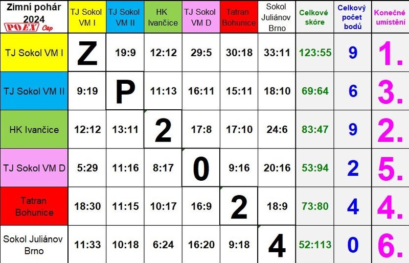 V sobotu 13. ledna jsme uspořádali turnaj v házené mladšího žactva. Byl to první přípravný turnaj v zimní přestávce soutěže. Přihlásilo se celkem 6 týmů. Kromě třech domácích (VM I – starší chlapci 2011, VM II – mladší chlapci 2012 a VM D – dívky) se přihlásily tři týmy z jihomoravské oblasti (HK Ivančice, Sokol Juliánov a Tatran Bohunice).