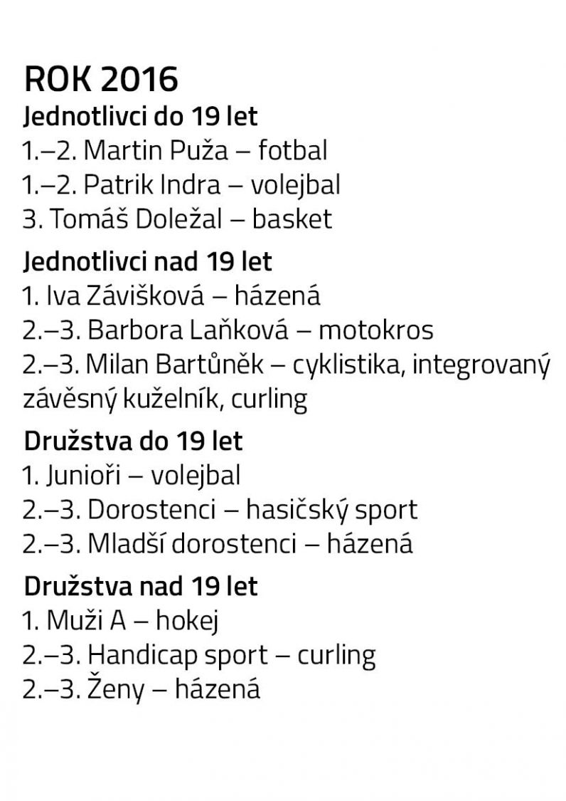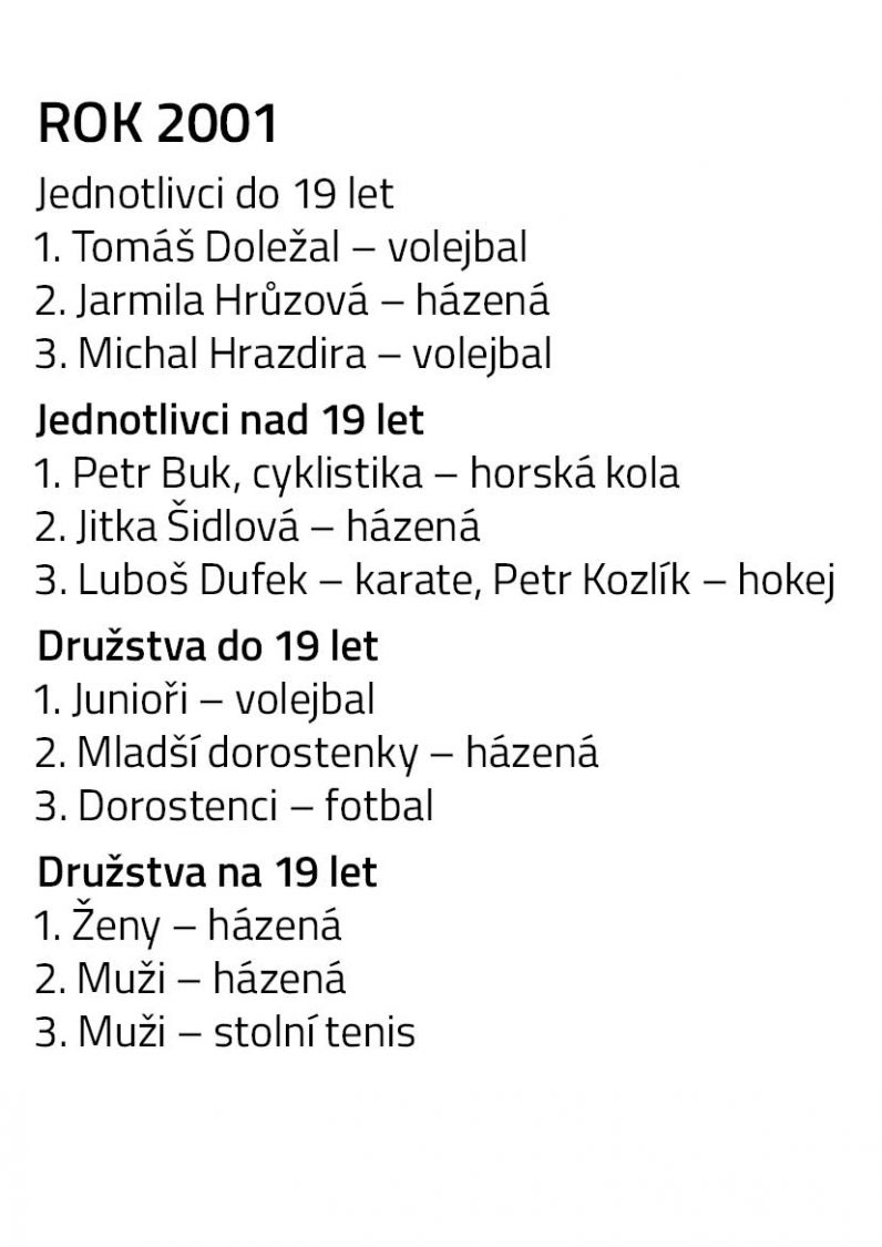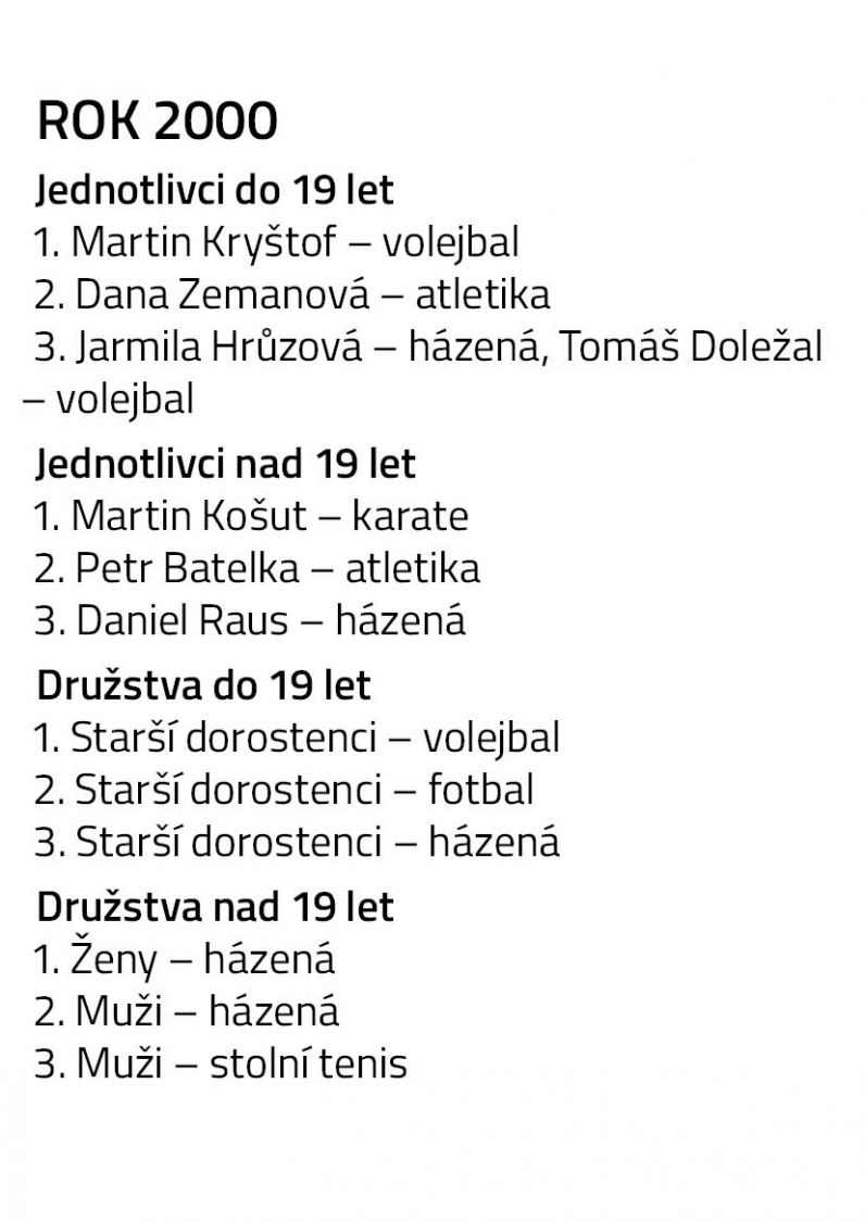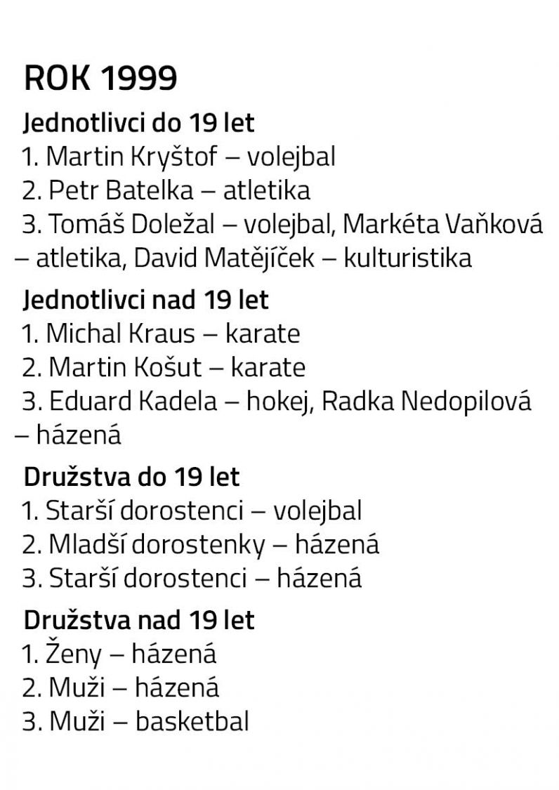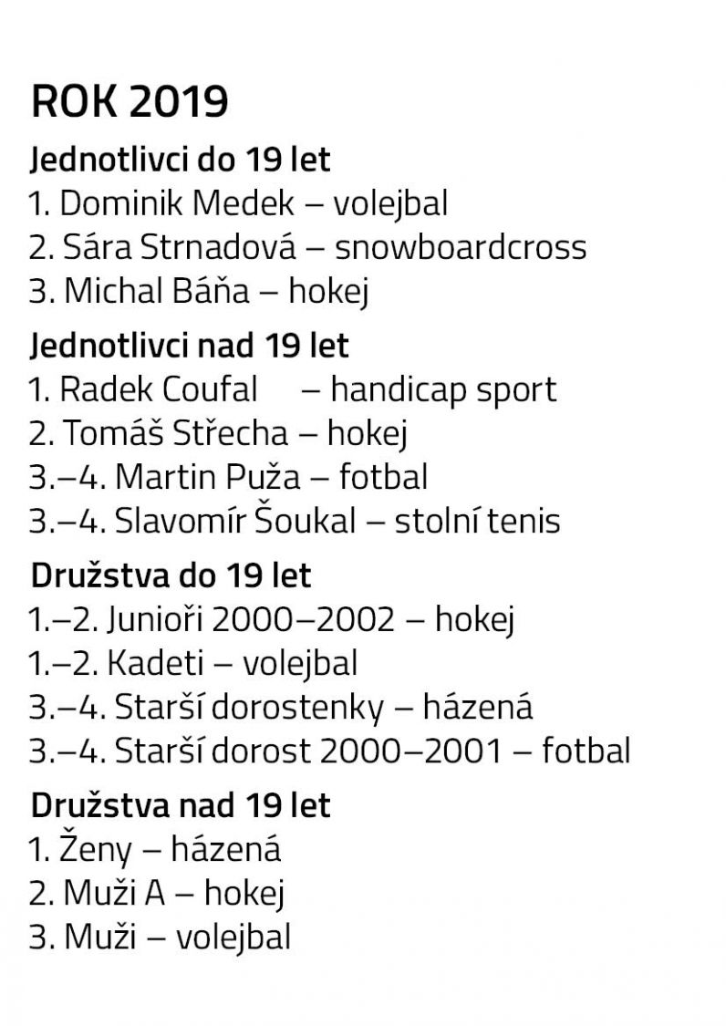 Za čtvrt století město ocenilo stovky úspěšných sportovců všech věkových kategorií od malých dětí až po odchovance, trenéry a zasloužilé sportovce. Přehled těch nejlepších na prvních třech místech v kategoriích do 19 a nad 19 let vám přinášíme.