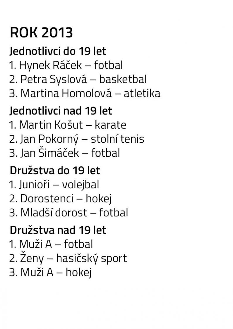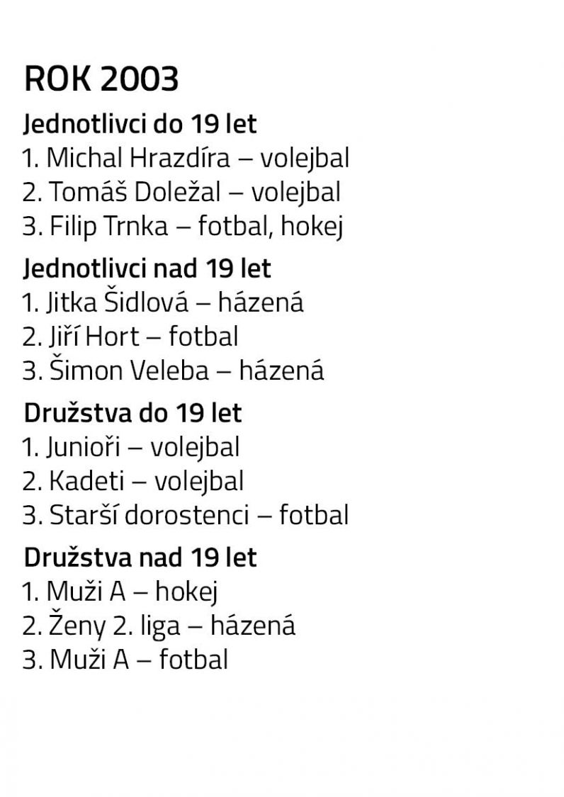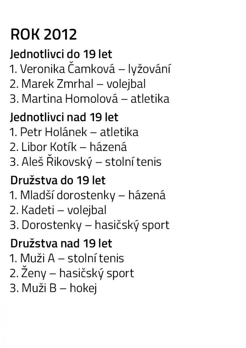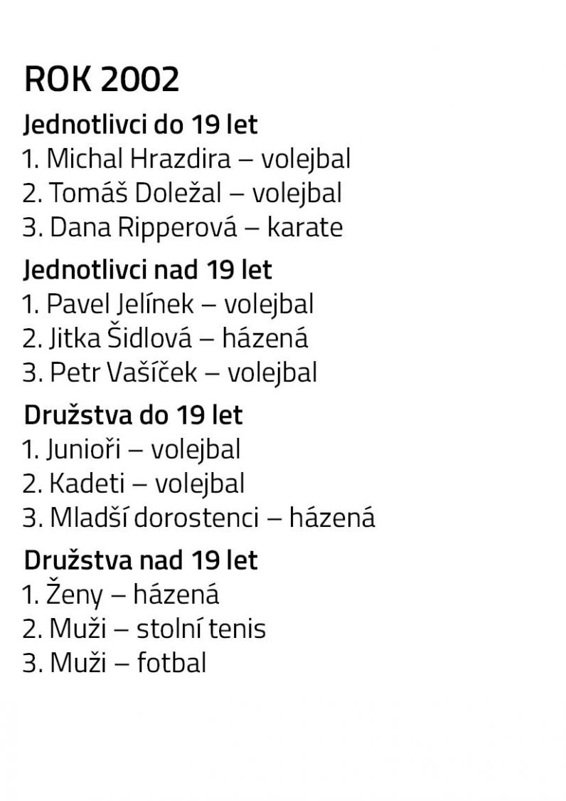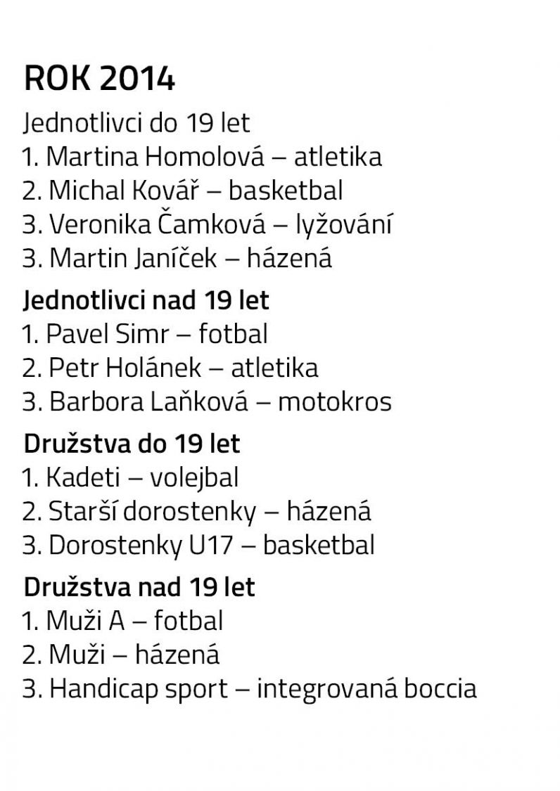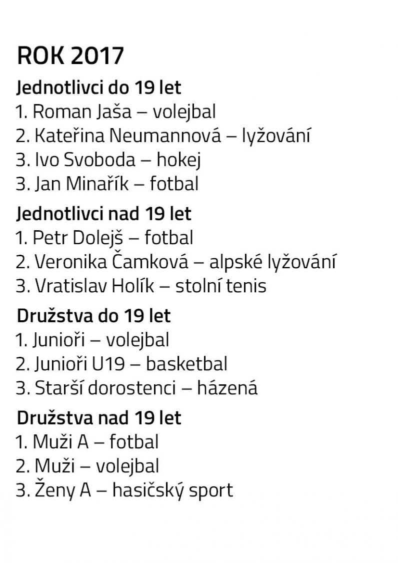 Za čtvrt století město ocenilo stovky úspěšných sportovců všech věkových kategorií od malých dětí až po odchovance, trenéry a zasloužilé sportovce. Přehled těch nejlepších na prvních třech místech v kategoriích do 19 a nad 19 let vám přinášíme.