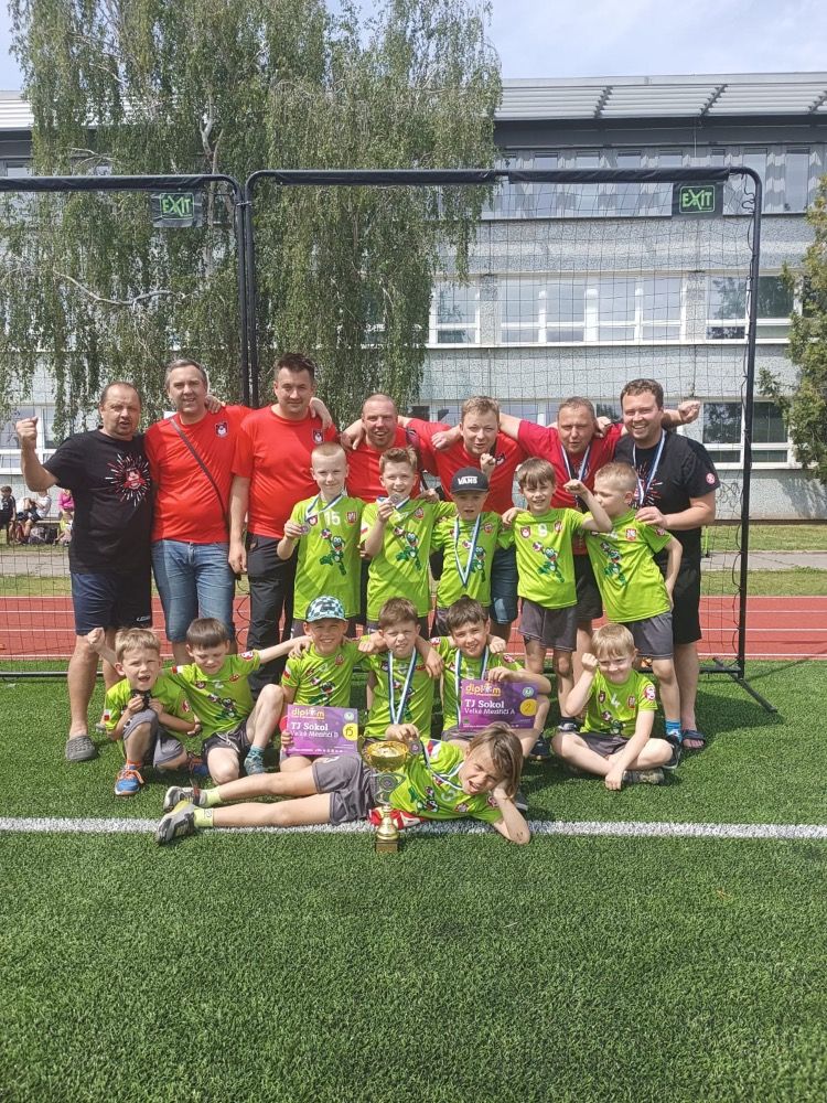 V kategorii minižáci startovalo 24 týmu rozdělených do 4 základních skupin. Naše družstvo v černých dresech dokázalo ve svojí základní skupině ve všech utkáních zvítězit a postoupit tak do finálové skupiny o 1. - 4. místo. Tam v prvním zápase po vyrovnaném průběhu dokázalo remizovat s pozdějším vítězem turnaje Legends Šaľa. Ve druhém utkání jsme si vybrali slabší chvilku a toho dokázali kluci z týmu Kúpele Bojnice využít a uštědřit nám tak jedinou porážku v turnaji. Po důrazné domluvě jsme v posledním zápase dokázali najít zbytky sil, a výrazně porazili šikovné družstvo z Kostelce na Hané. Celkově tak naše černé družstvo obsadilo krásné třetí místo a převzalo pohár a bronzové medaile.