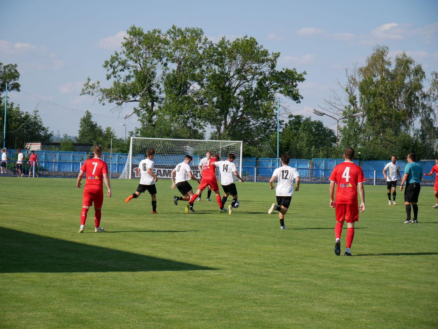 Zápas se odehrál v úmorném vedru, ale i přesto se hrál kvalitní a divácky zajímavý fotbal. Hosté z Velkého Meziříčí udeřili už ve třetí minutě, kdy se za záda Ondřeje Fialy trefil Josef Jonáš. Inkasovaný gól však Fošku nezlomil, naopak začala být aktivnější a ve třinácté minutě využil hrubou chybu hostující obrany Tomáš Hobza a bylo vyrovnáno.