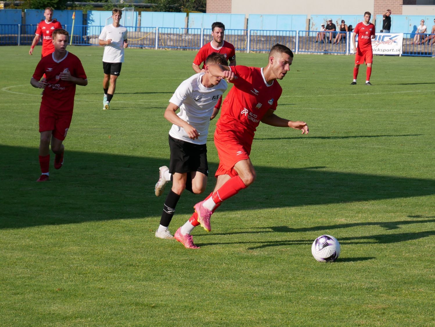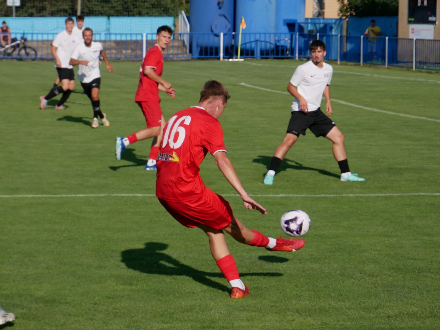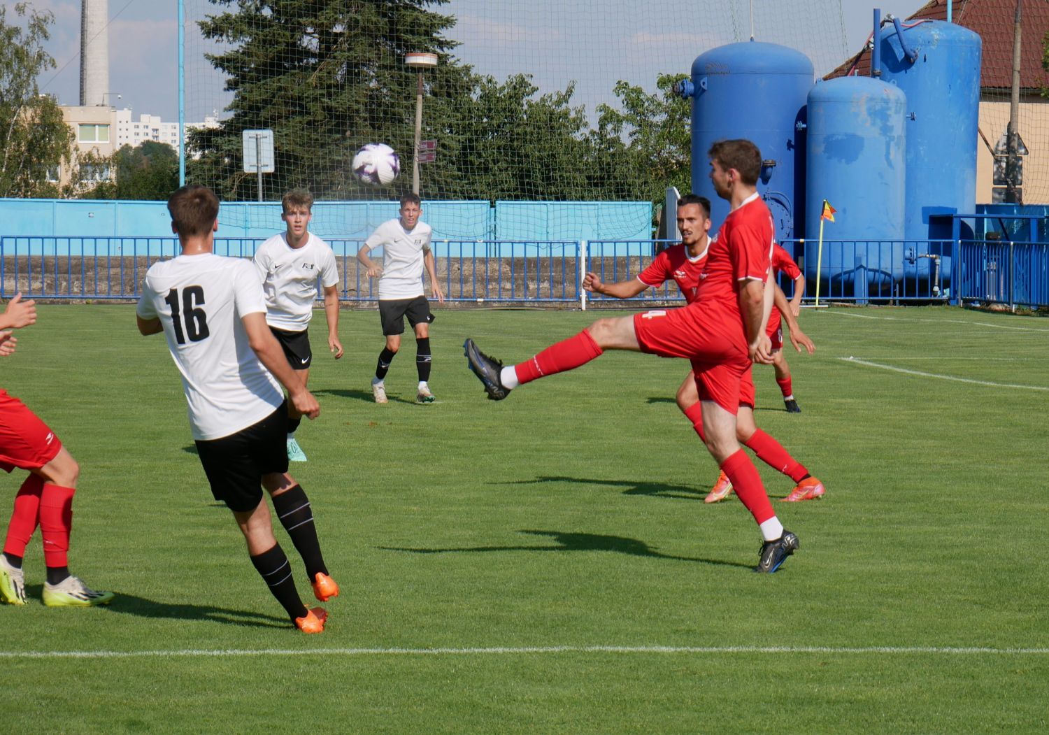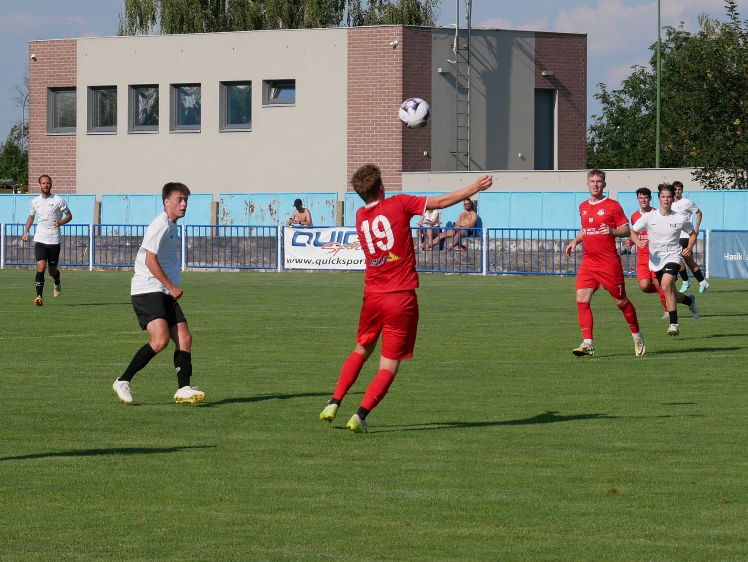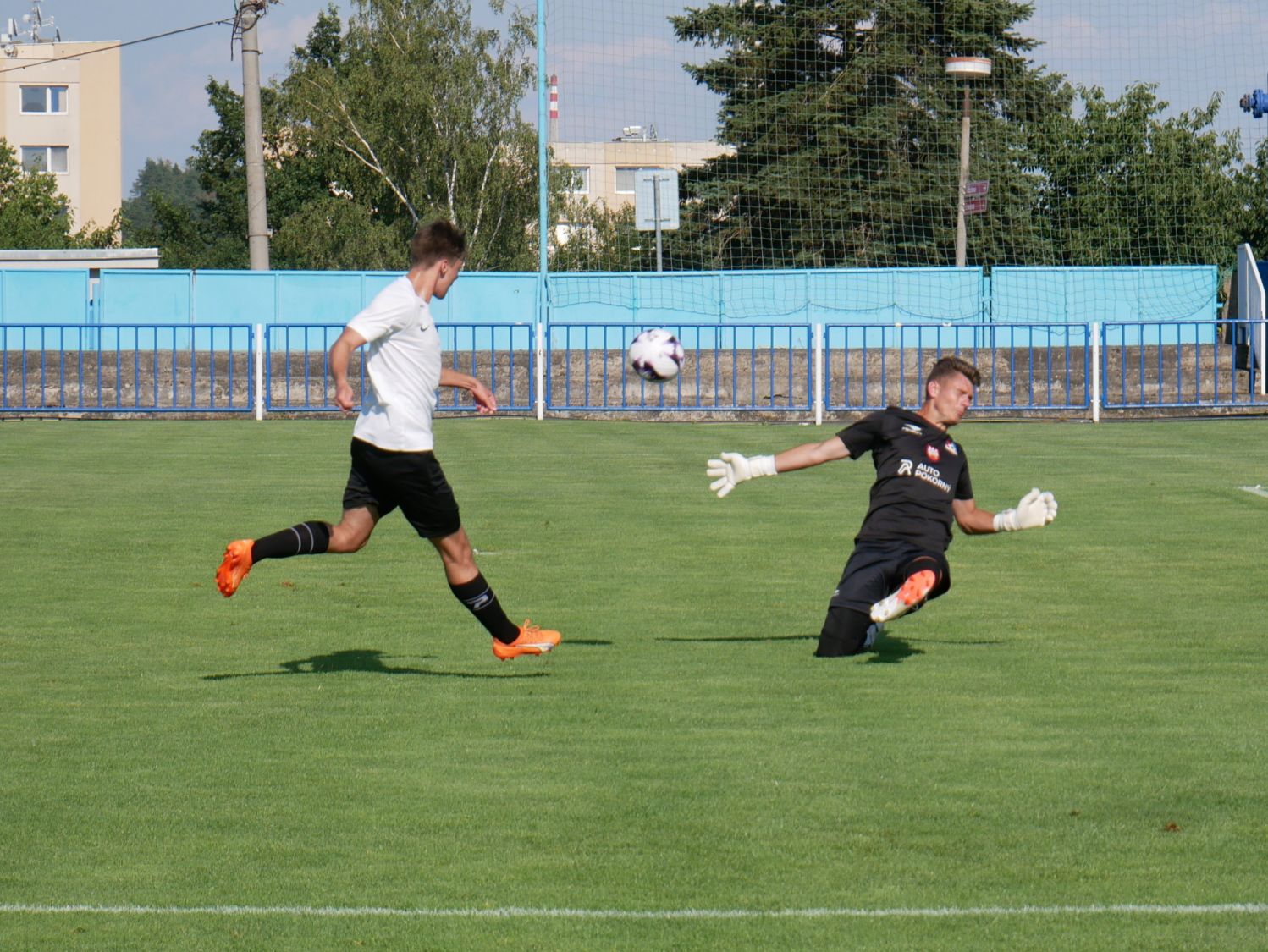 Dál se hrál velmi pohledný fotbal. Ve třicáté sedmé minutě si domácí brankař Ondřej Fiala vyběhl až moc daleko od své svatyně a toho okamžiku chladnokrevně využil Radim Šuta. Jenže uteklo pět minut a domácí předvedli učebnicovou akci, které nesla minimálně prvoligové srovnání a Vojtěch Dlouhý vyrovnal na 2:2.