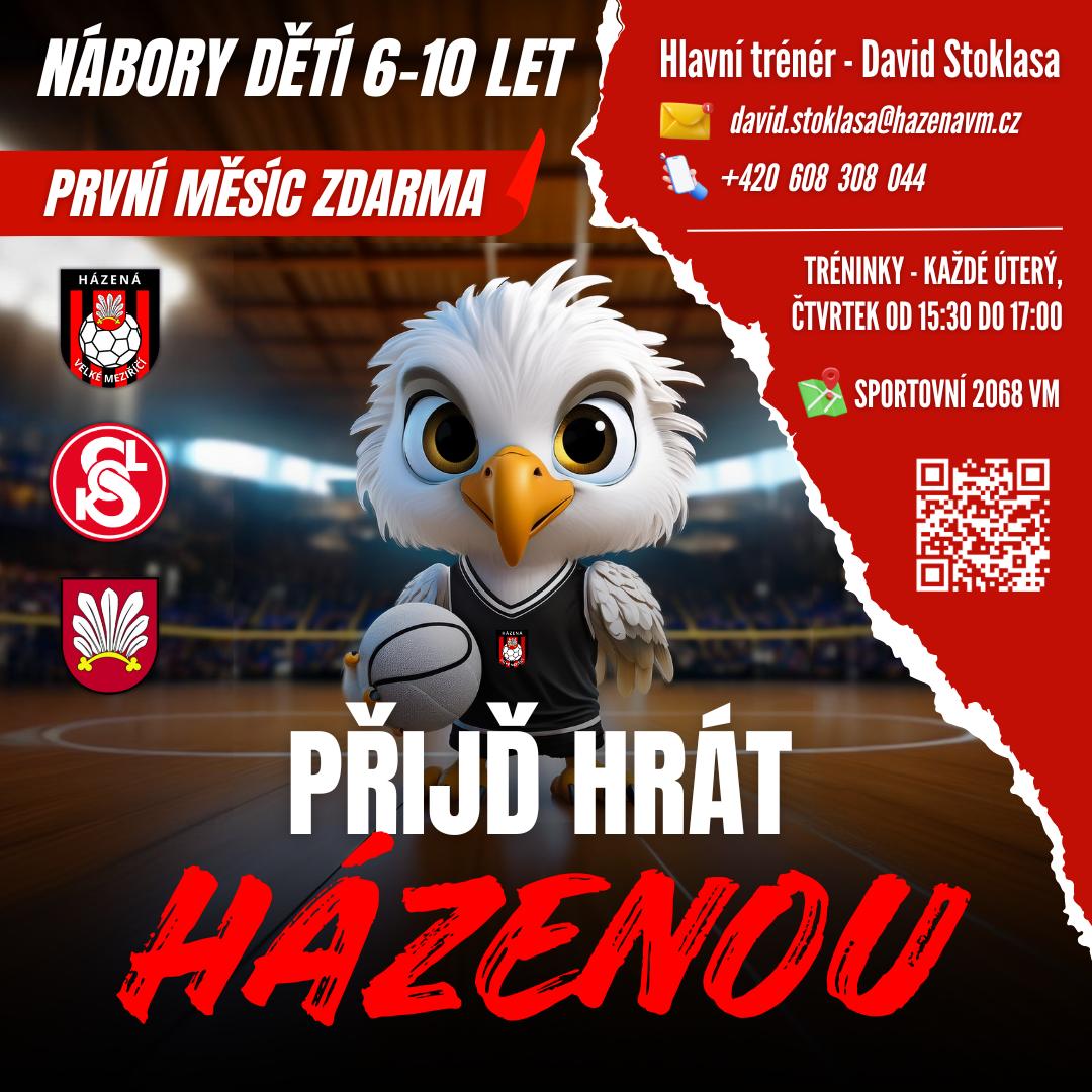 Sportovní oddíl Házené Velké Meziříčí přijme do svých řad nové spoluhráče a spoluhráčky. Pokud tě baví pohyb, chceš poznat nové kamarády, jezdit na turnaje, spolupracovat v kolektivu a získat nové zážitky, rádi tě uvidíme na tréninku.