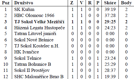 TJ Sokol Velké Meziříčí – Tatran Bohunice „B" 29:25 (14:10)