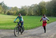 Ve 14 hodin bylo odstartováno! Krásná, i když náročná trať vede přes Tři kříže, Loupežníka, do Balinského údolí, přes brod, který byl letos úplně suchý, do Oslavice, po polích do Osového, dolů do Nesměřského údolí, kolem hřbitova zahrádkami na Fajťák, po sjezdovce dolů a Potoky pod Zámek, kolem něhož se dobíhá do zaslouženého cíle na Areálu zdraví. Jelikož je NKT Koloběh závod smíšených dvojic, radost v cíli je ohromná. Páry se objímají a šťastně popíjí punč nebo čaj a užívají si podoběhovou atmosféru.