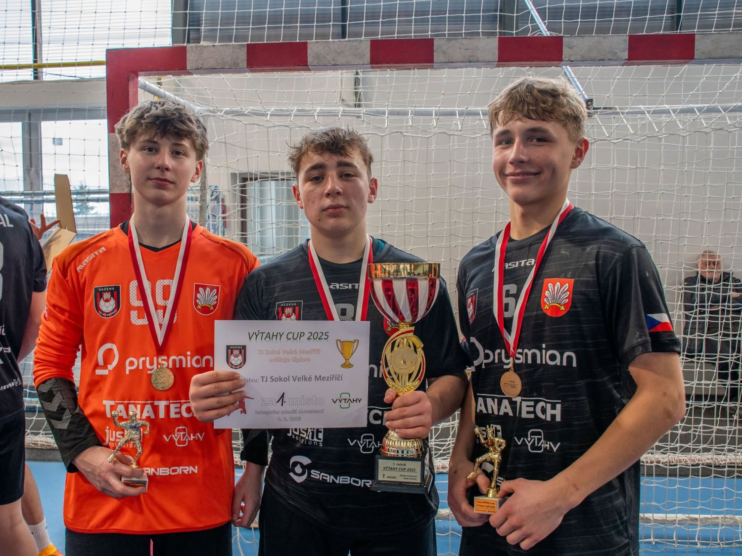 První únorovou neděli se ve velkomeziříčské sportovní hale uskutečnil I. ročník házenkářského turnaje pro mladší dorostence s názvem VÝTAHY CUP 2025. Na poslední chvíli se odhlásilo družstvo Pardubic, a proto se turnaje účastnily celkem tři týmy. Kromě domácího celku ještě TJ JM CHODOV a TJ Spartak Sezimovo Ústí. Hrálo se systémem každý s každým 2x 30 minut.