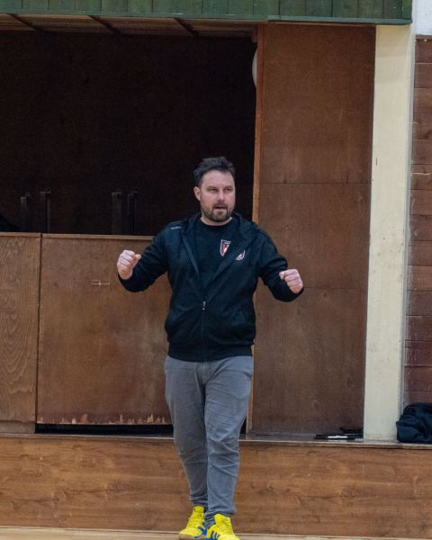 Úvodní desetiminutovka přinesla ještě vyrovnanou hru. Pak ale domácí zahájili mohutnou stíhací jízdu. V útoku jsme kupili jednu chybu za druhou a minutu a půl před závěrečnou sirénou domácí celek snížil na rozdíl jediné branky. Poslední slovo si ale vzal náš kapitán Tom Jelínek, který dvěma přesnými zásahy rozhodl o konečném výsledku 35:38. Nejlepším střelcem zápasu se stal velkomeziříčský Štěpa Fiala, který zatížil soupeřovo konto třinácti přesnými zásahy.