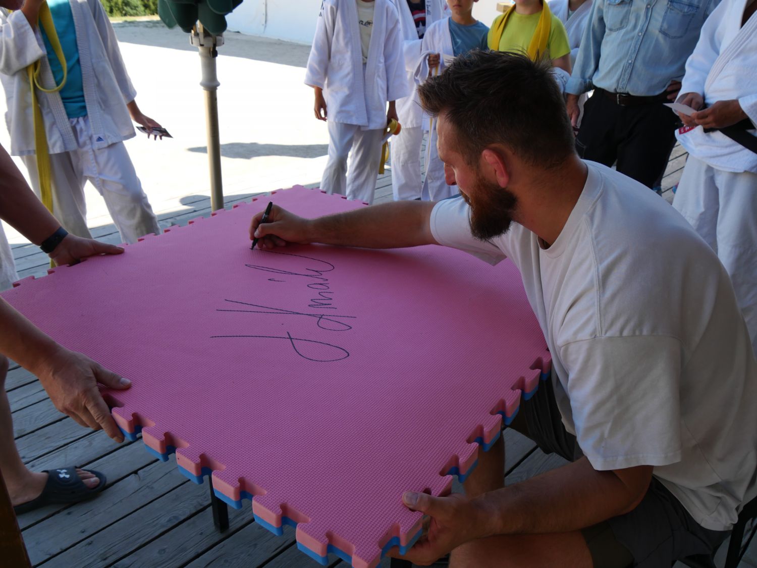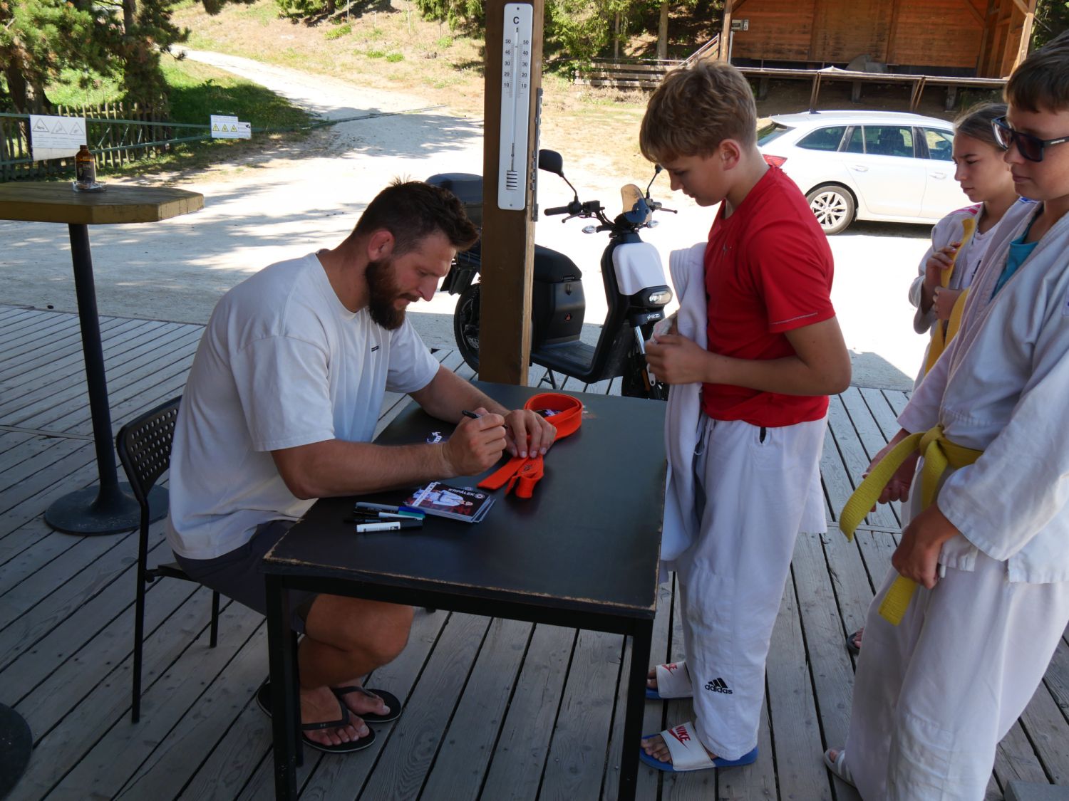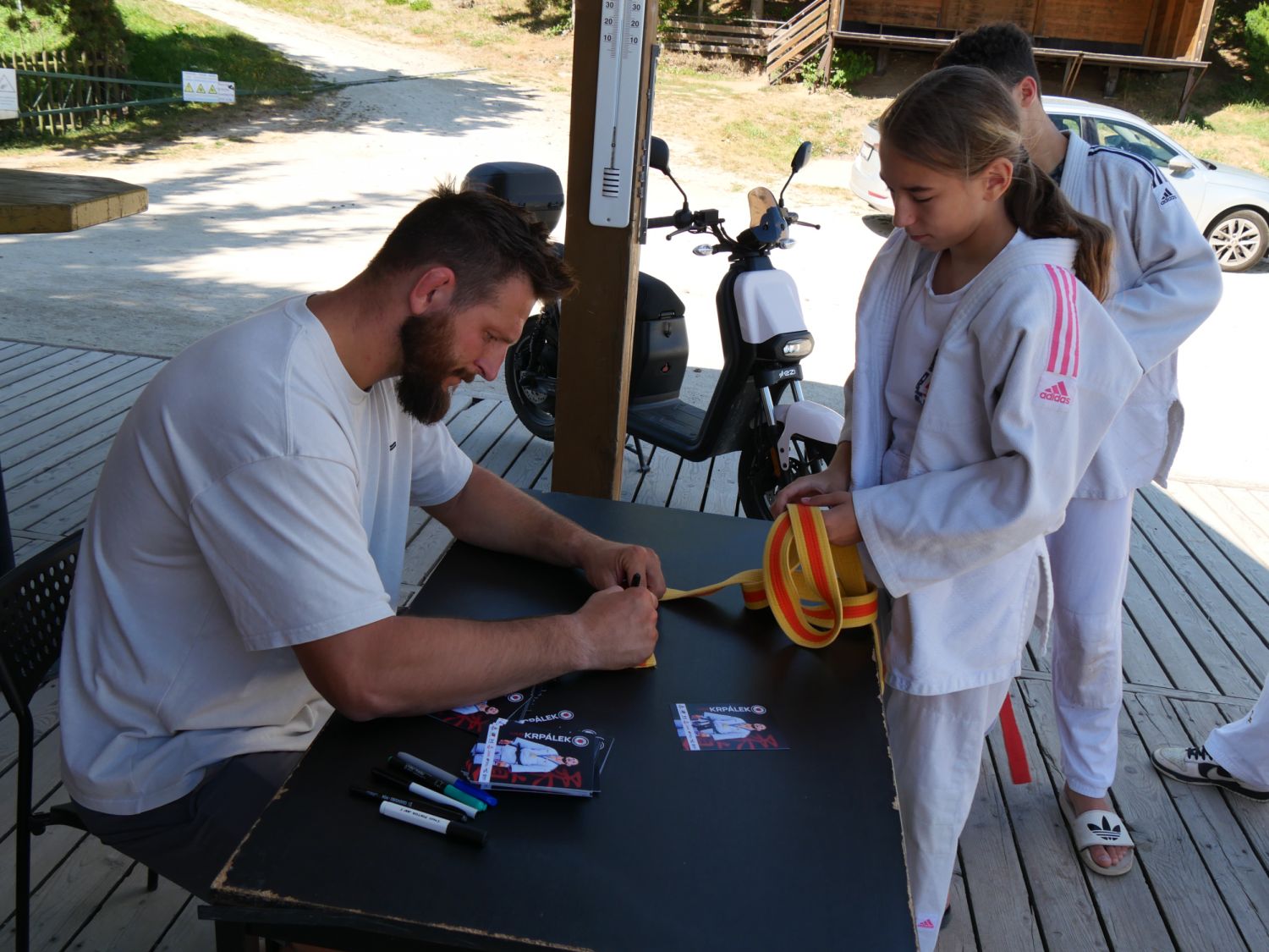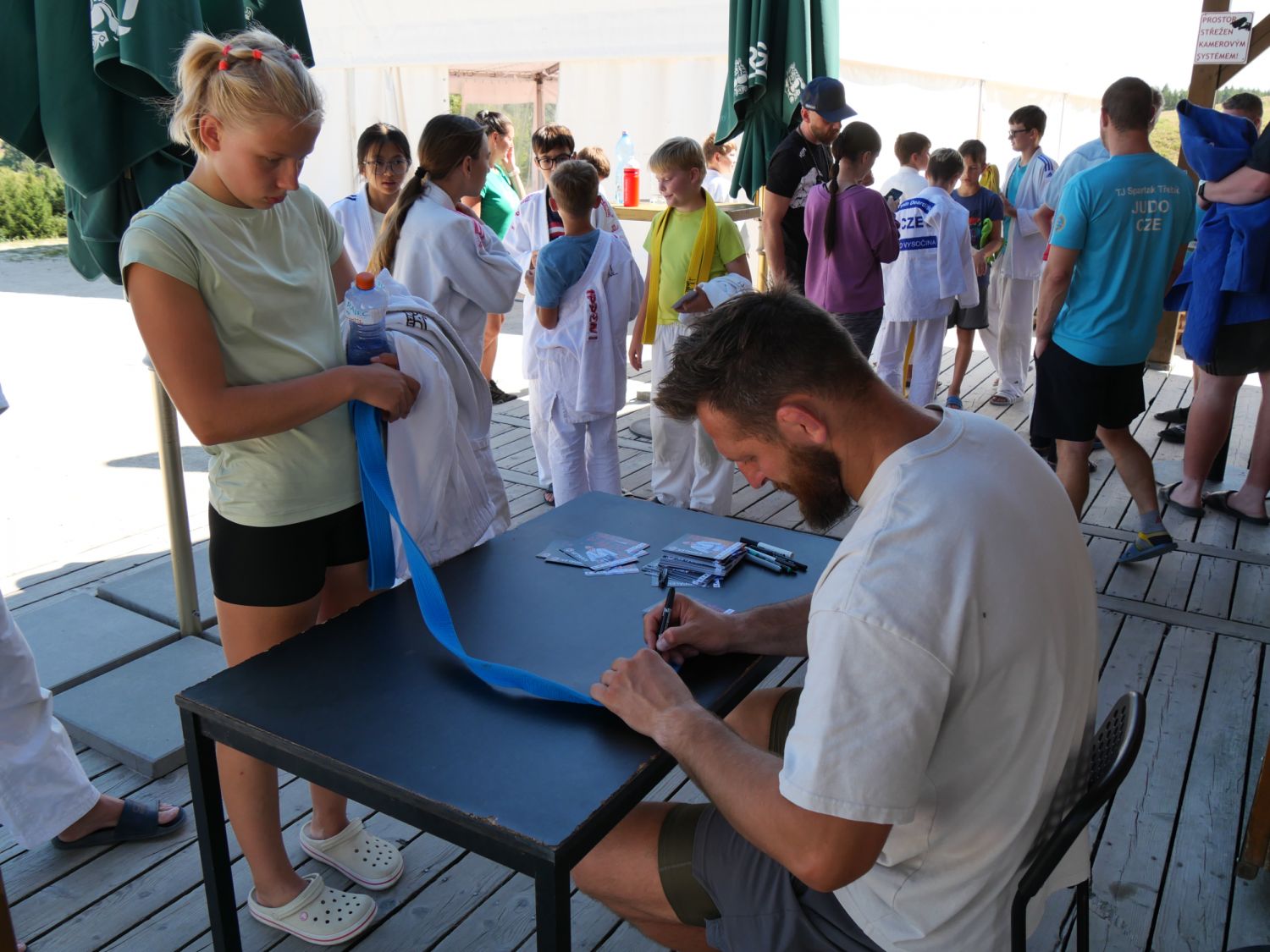 Nejprve si s judistickými nadějemi docela intenzivně zatrénoval a pak zbyla i chvilka na společné focení a rozdávání autogramů. Mladí judisté tak získali suvenýr v podobě podpisu - třeba na kimono, pásek nebo tričko. Prostě, suvenýr k nezaplacení.