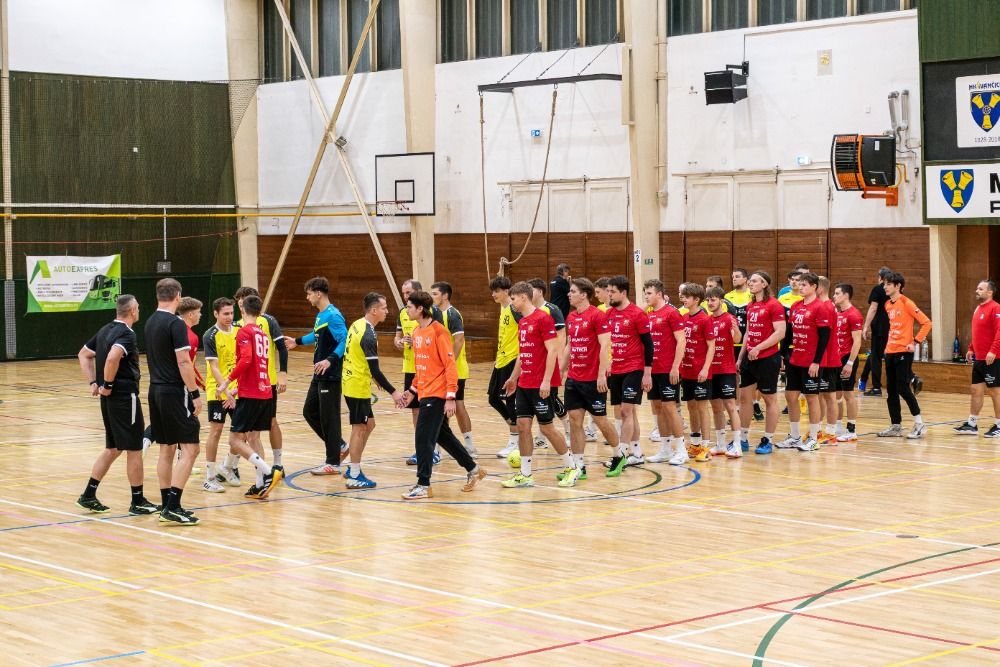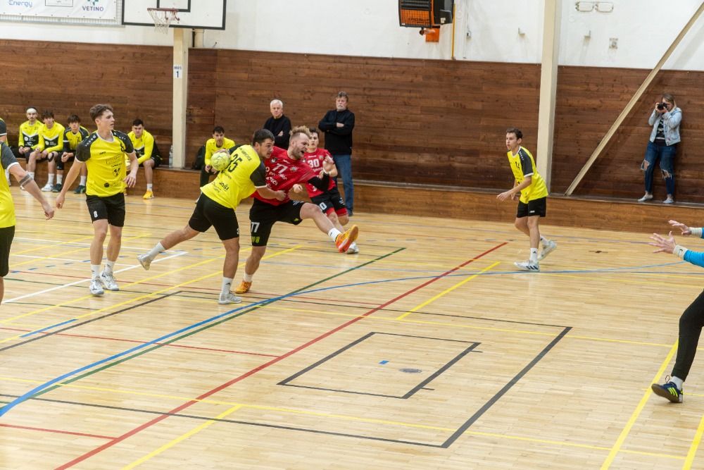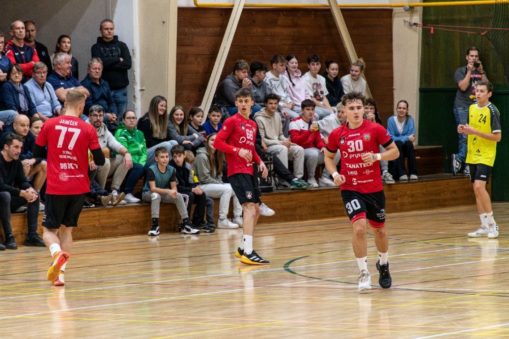 Utkání začalo svižně a o branky nebyla nouze. Leč týmem, kdo měl herně navrch, byli naši borci. Po úvodní patnáctiminutovce byl stav 7:10 a zdálo se, že ve dnešním utkání nebude nouze o branky. Tomuto trendu se ale jako první vzepřeli domácí a s přibývajícím časem přitvrzovali obranu. My se ale i nadále dokázali prosazovat ze všech postů a náš brankový příděl se příliš nepřibrzdil. Po celou první půli jsme tak dokázali udržovat 2-3 brankové vedení a domácí byli nuceni stále dotahovat. Zlom nastal ve 26. minutě za stavu 12:15. Místo navýšení poločasového náskoku jsme v útoku několikrát lacině ztratili balón a domácí to dokázali rychle trestat. Ti se tak v závěrečných minutách prosadili celkem 4x a poprvé v utkání šli do vedení.