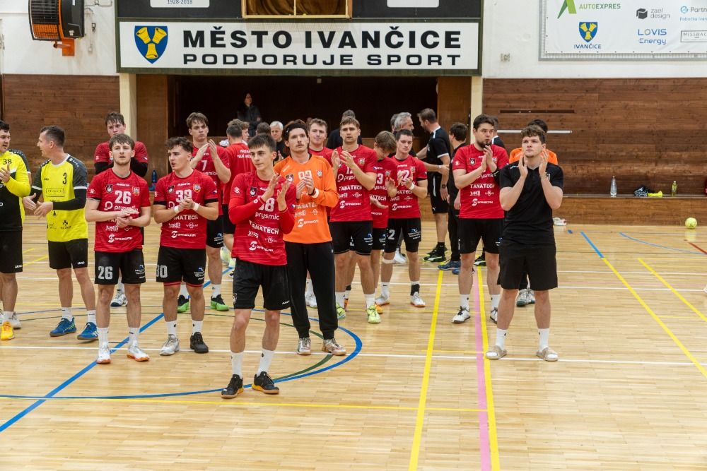 Vydařený závěr první půle domácí pořádně nakopnul a do druhého poločasu vstoupili jako vyměnění. Naši hráči jejich mohutný nástup vůbec nezachytili a během 8 minut tak Ivančice odskočili již na 20:15!!! Až poté jsme se herně zvedli, kdy jsme nejen, že zpevnili obranu, ale hlavně jsme se po dlouhých 13 minutách dokázali konečně prosadit. Následující minuty byly na hřišti velice vypjaté, ale našim hráčům se během následující pasáže podařilo srovnat krok a do polední desetiminutovky se šlo za téměř vyrovnaného stavu (51. minuta 21:20). Závěr se ale lépe vydařil domácím, kteří nám za mohutného povzbuzování publika odskočili až na rozdíl 4 branek. My už bohužel neměli dostatek sil na odpověď. Prohra 27:24 nás nejen že odsunula na 4. místo, ale hlavně nám výrazně zkomplikovala cestu za obhajobou ligového prvenství.