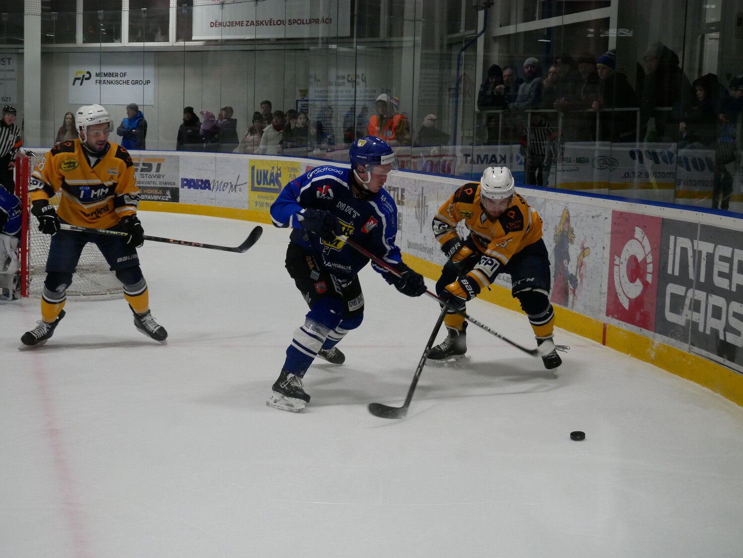 Na zimním stadionu v Kopřivnici diváci viděli velmi ofenzivní souboj domácího týmu s velkomeziříčským. Kopřivnice o svém vítězství rozhodla dvěma využitými přesilovkami ze šesti. Jarda Juda navíc vychytal nařízené trestné střílení. Velkomeziříčští čtyři klasické a jednu pětiminutovou výhodu využít nedokázali, všech 37 střel pokryl výborně chytající Kubáň.